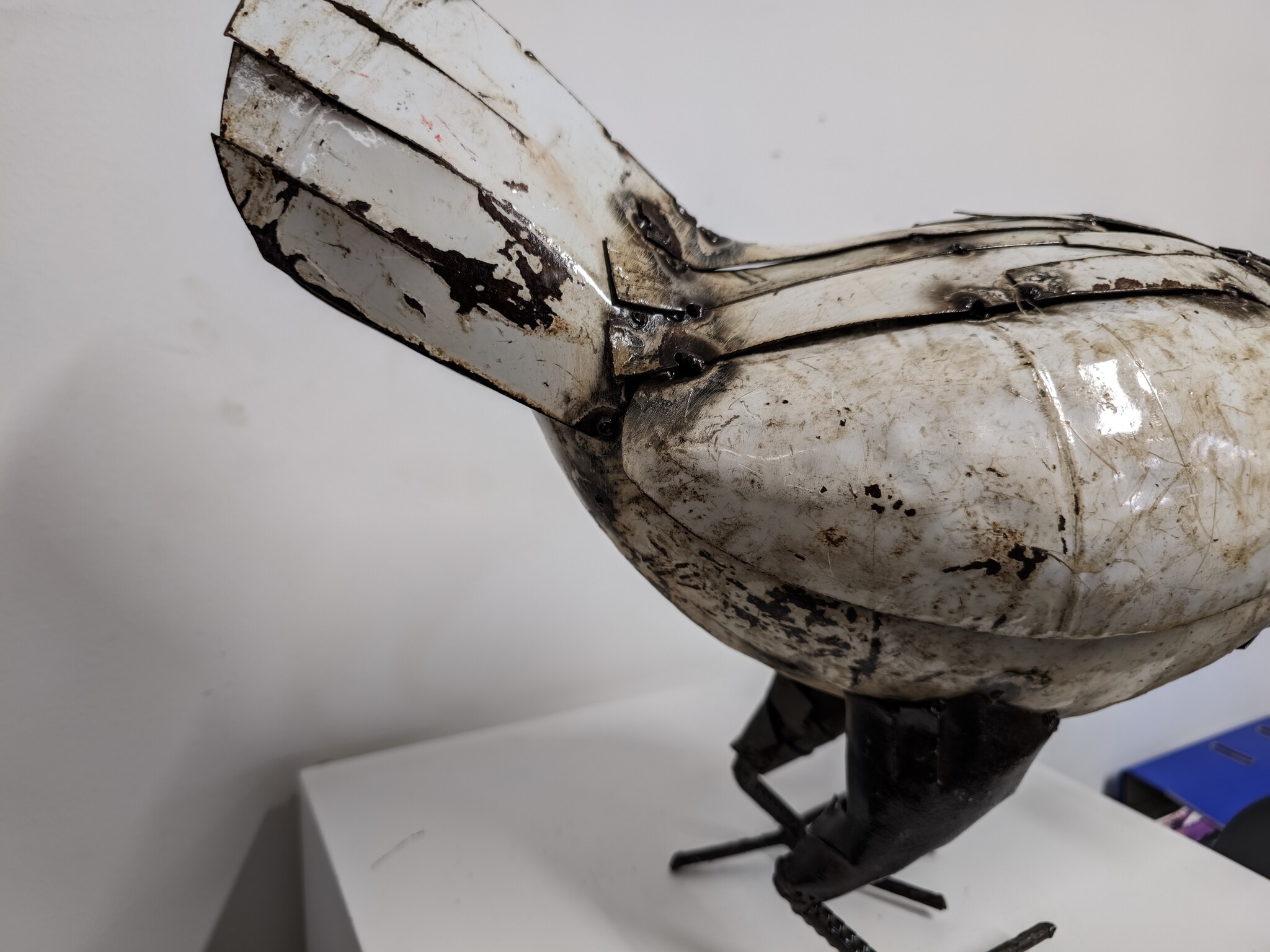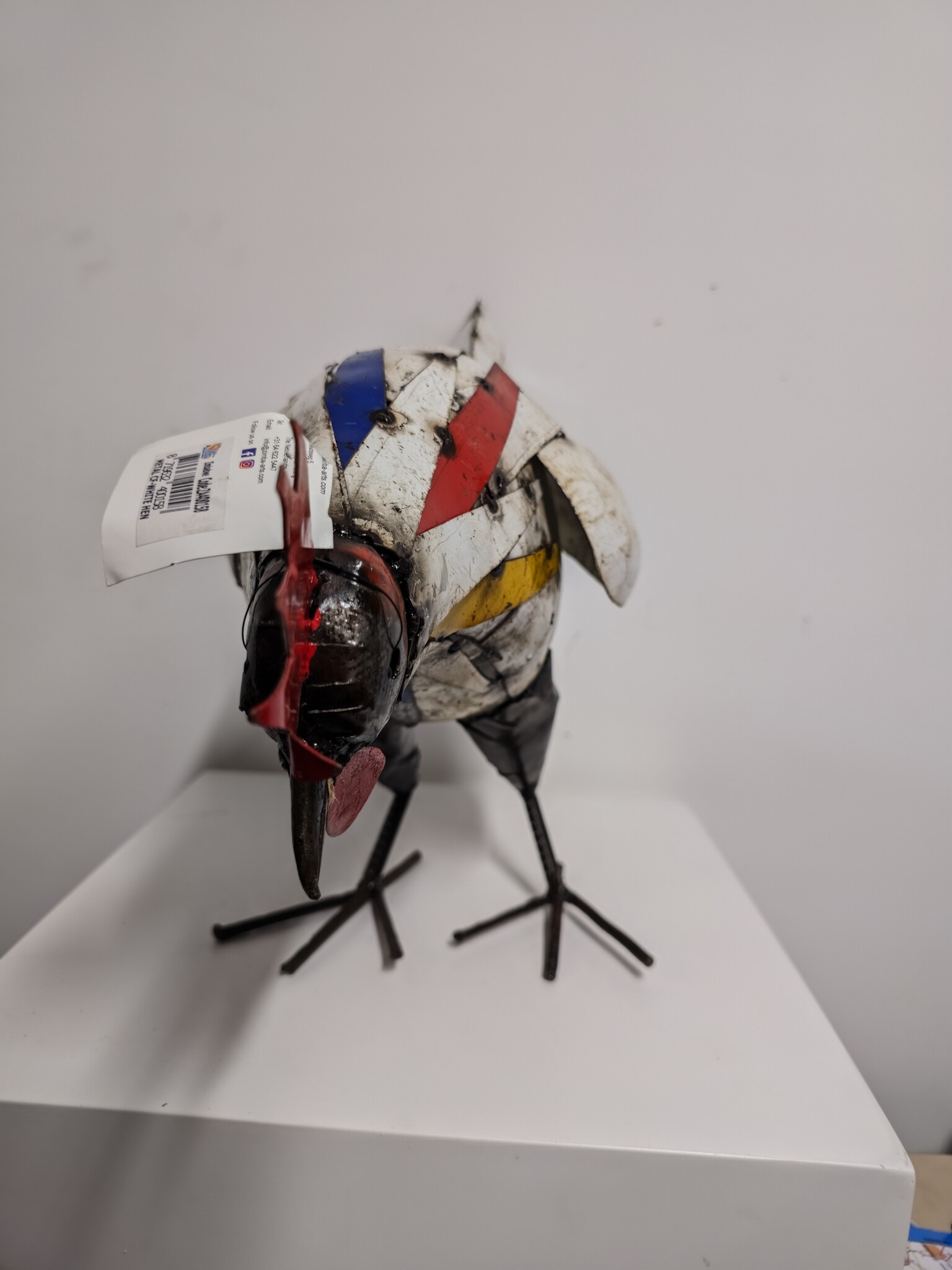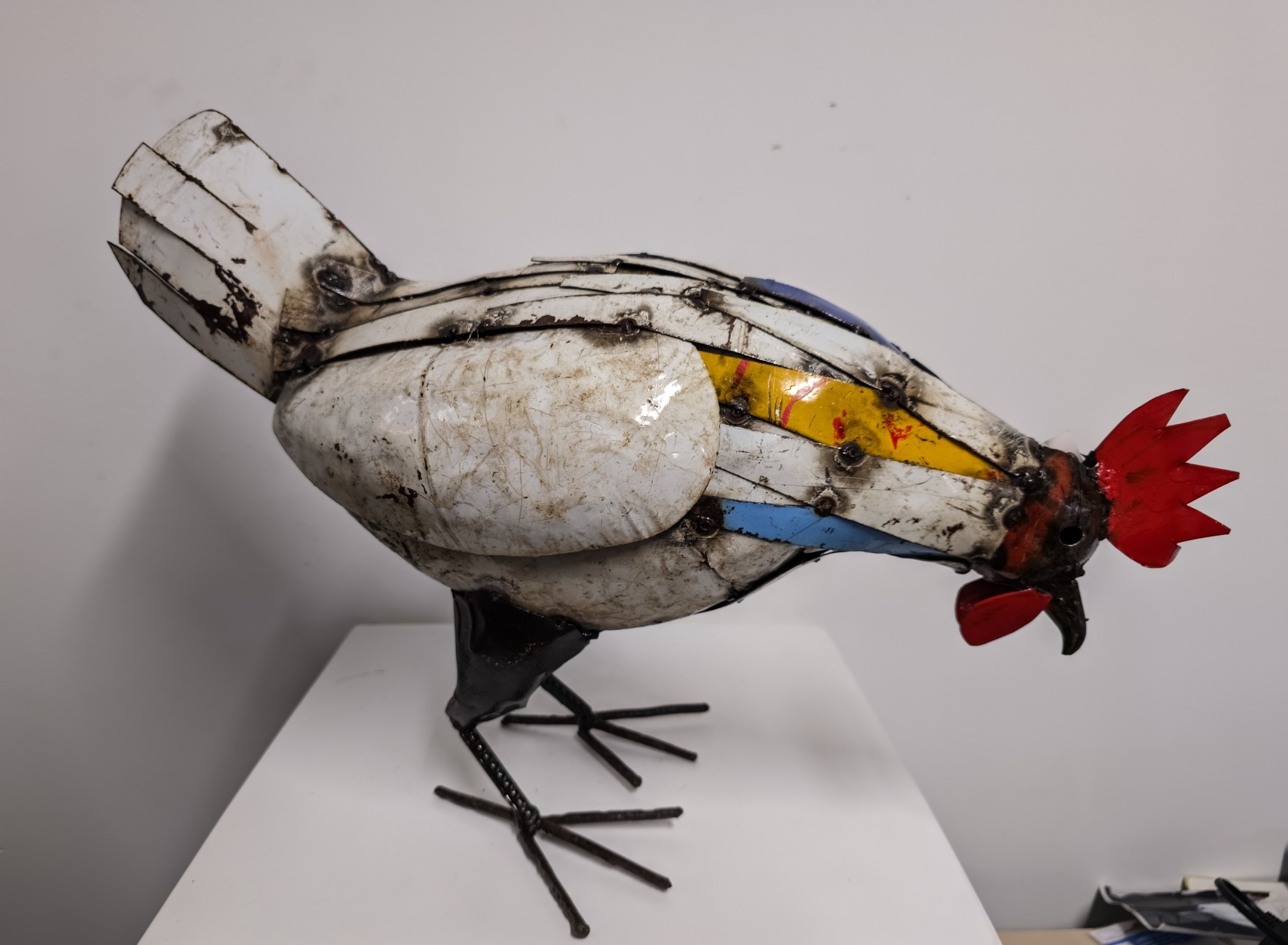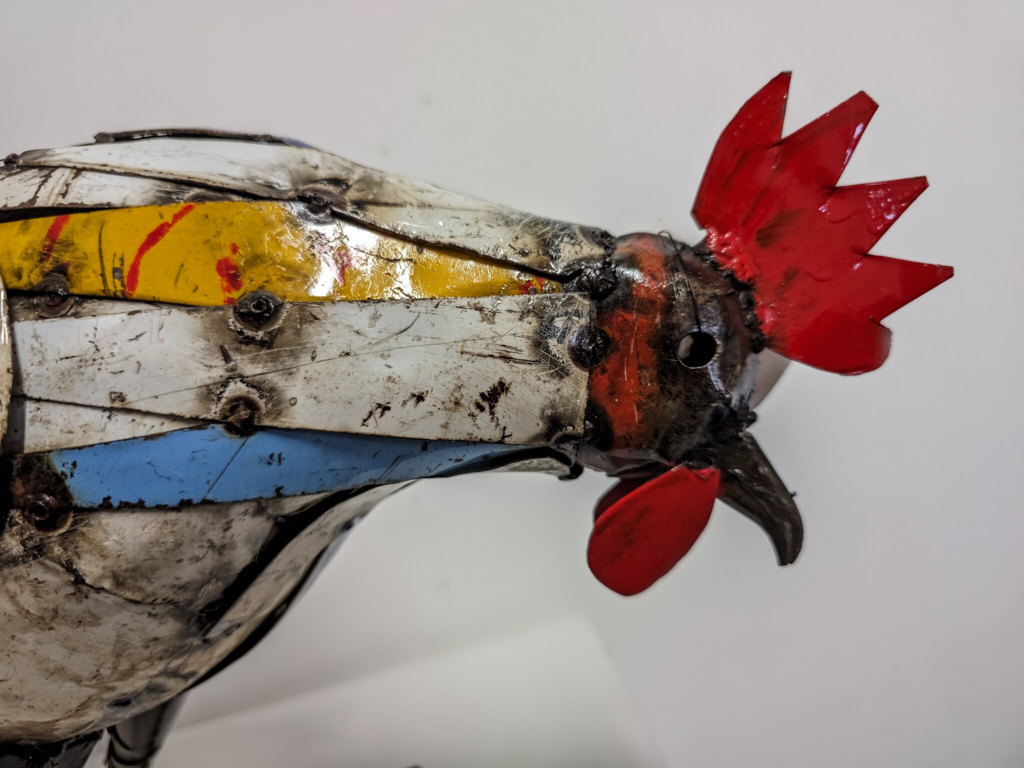 Beautifully finished metal figure of a chicken of no less than 46cm high.