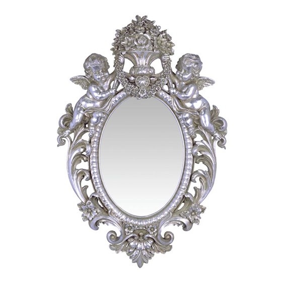 Classic Baroque Bucharest mirror with angels silver 73cm