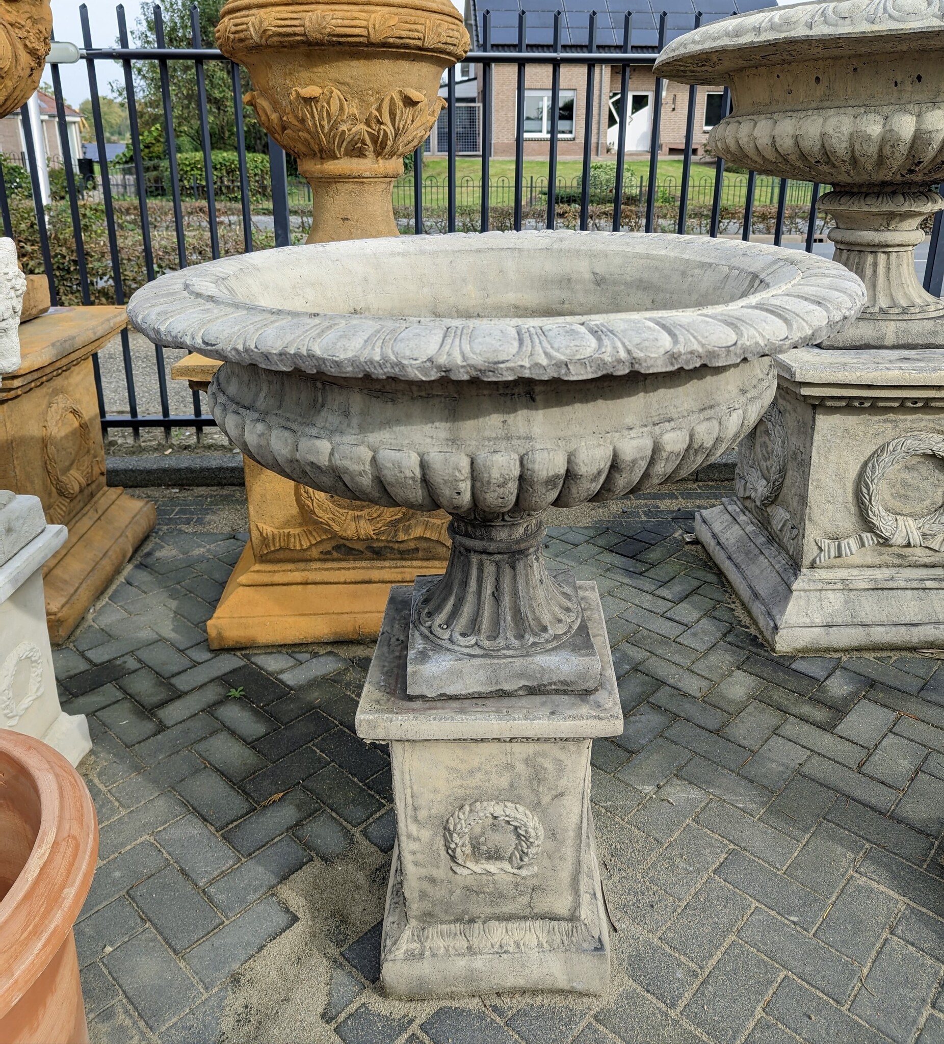 This garden vase is made of solid high-quality concrete with a very high cement content, so it can easily withstand all weather influences for decades.
