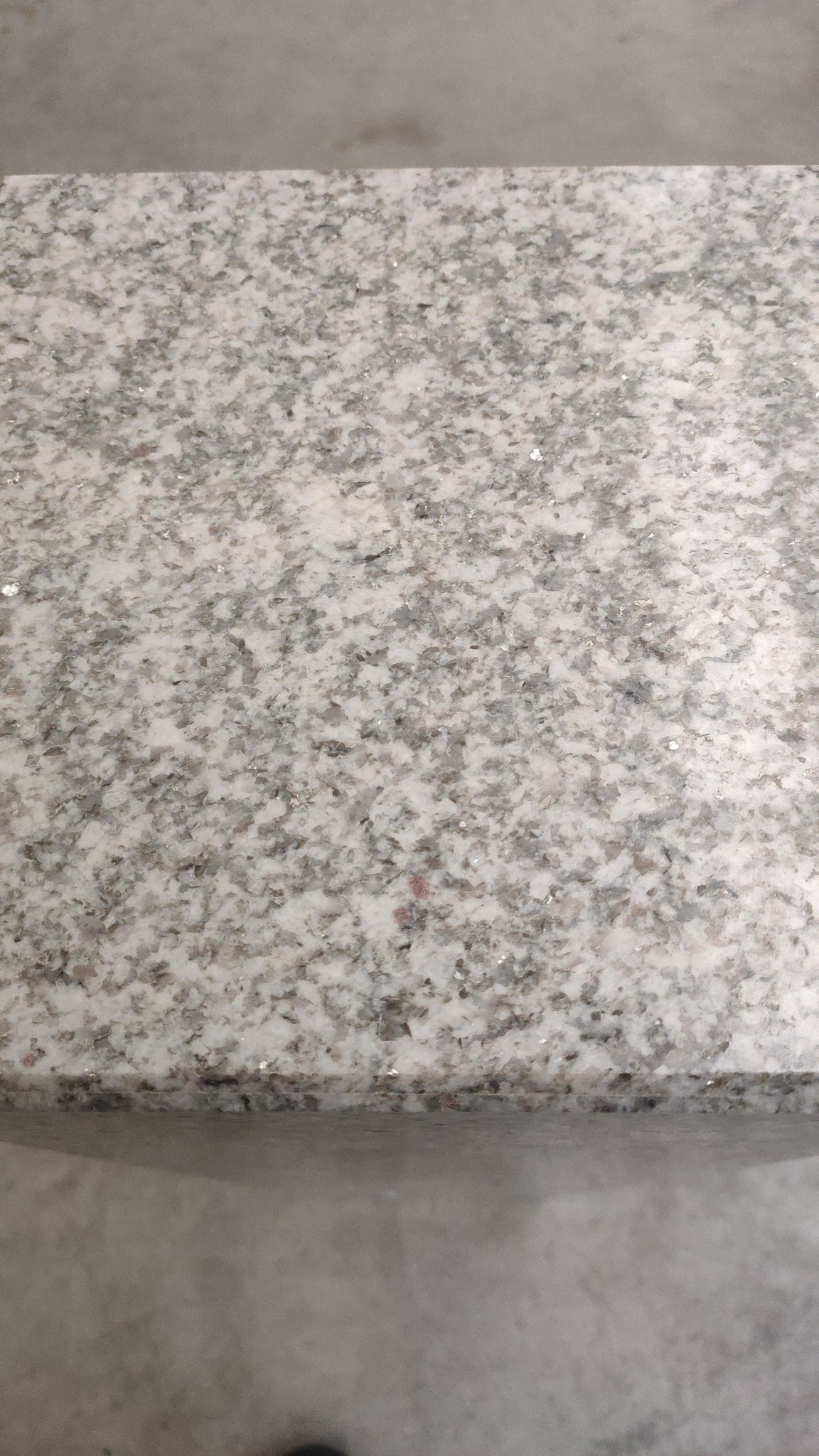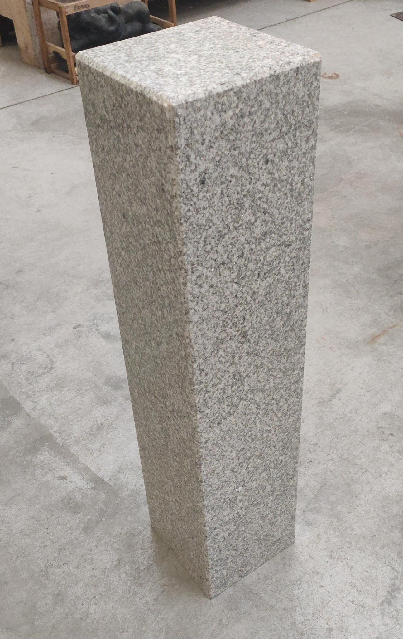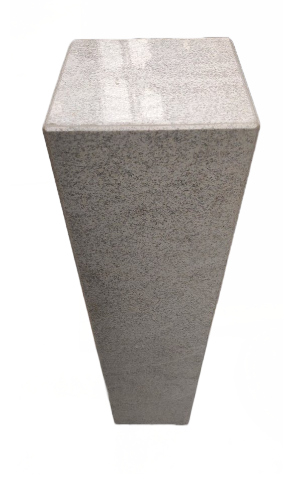 These columns are made of natural gray speckled granite and then polished, resulting in a high-gloss plinth. The columns are extra reinforced in the corners.