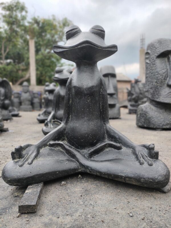 This statue of a meditating frog is made of high-quality cast stone with a very high cement content, which means that all these statues can easily withstand all weather influences. The color is black and may differ slightly from the photo because this entire series is handmade. Images of frogs are also often given as gifts to friends, as frogs symbolize prosperity, friendship and abundance.