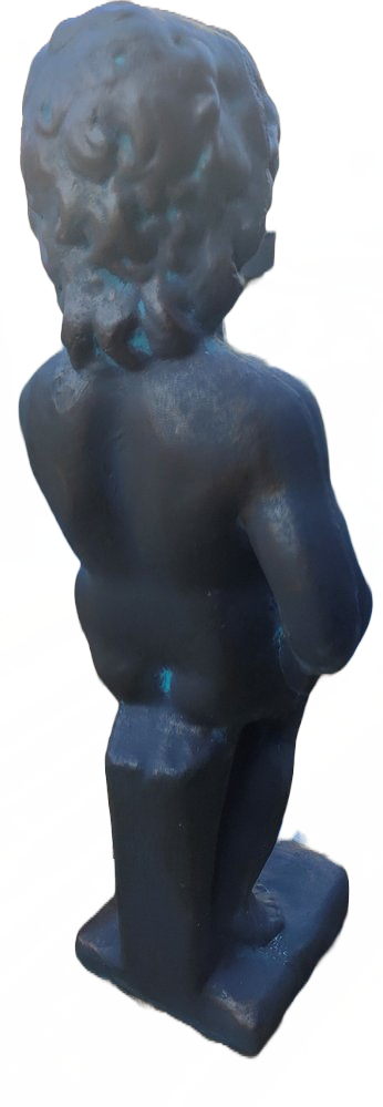 Manneken Pis spray element, to be placed in a pond, in a niche such as in Brussels or on a large water basin. Made of bronze colored cast stone. Approx 73cm high and 35kg.