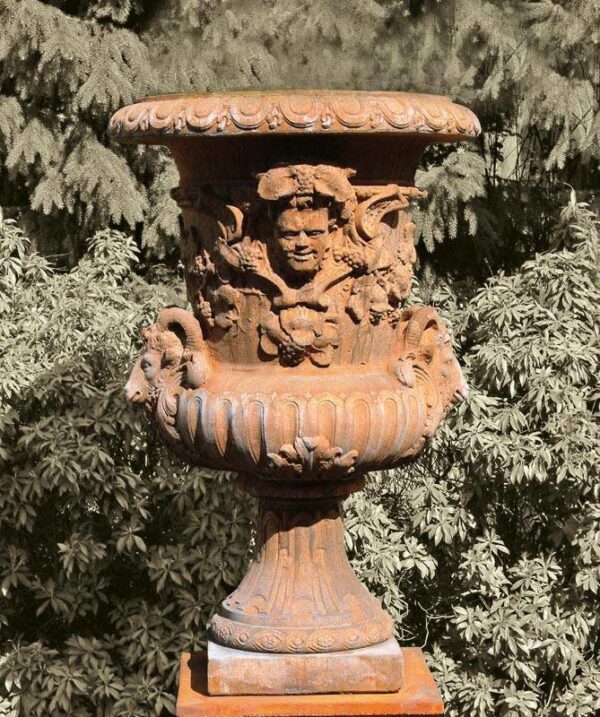 You can give your large garden, company, park or house a beautiful and right atmosphere with this classic garden vase with ram’s head.