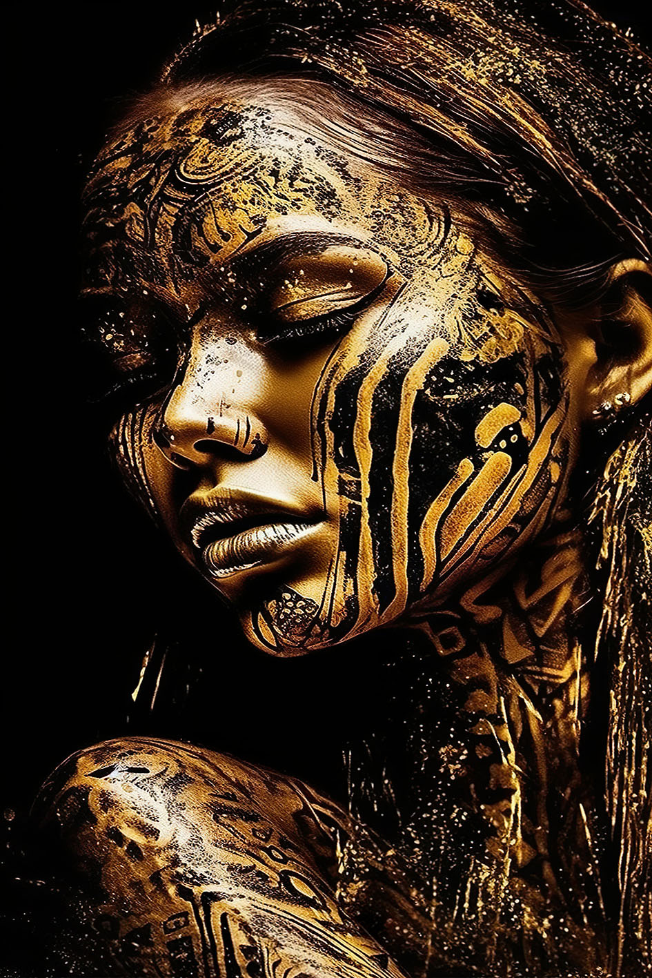 Glass painting Black and gold painted woman 80x120cm matt effect