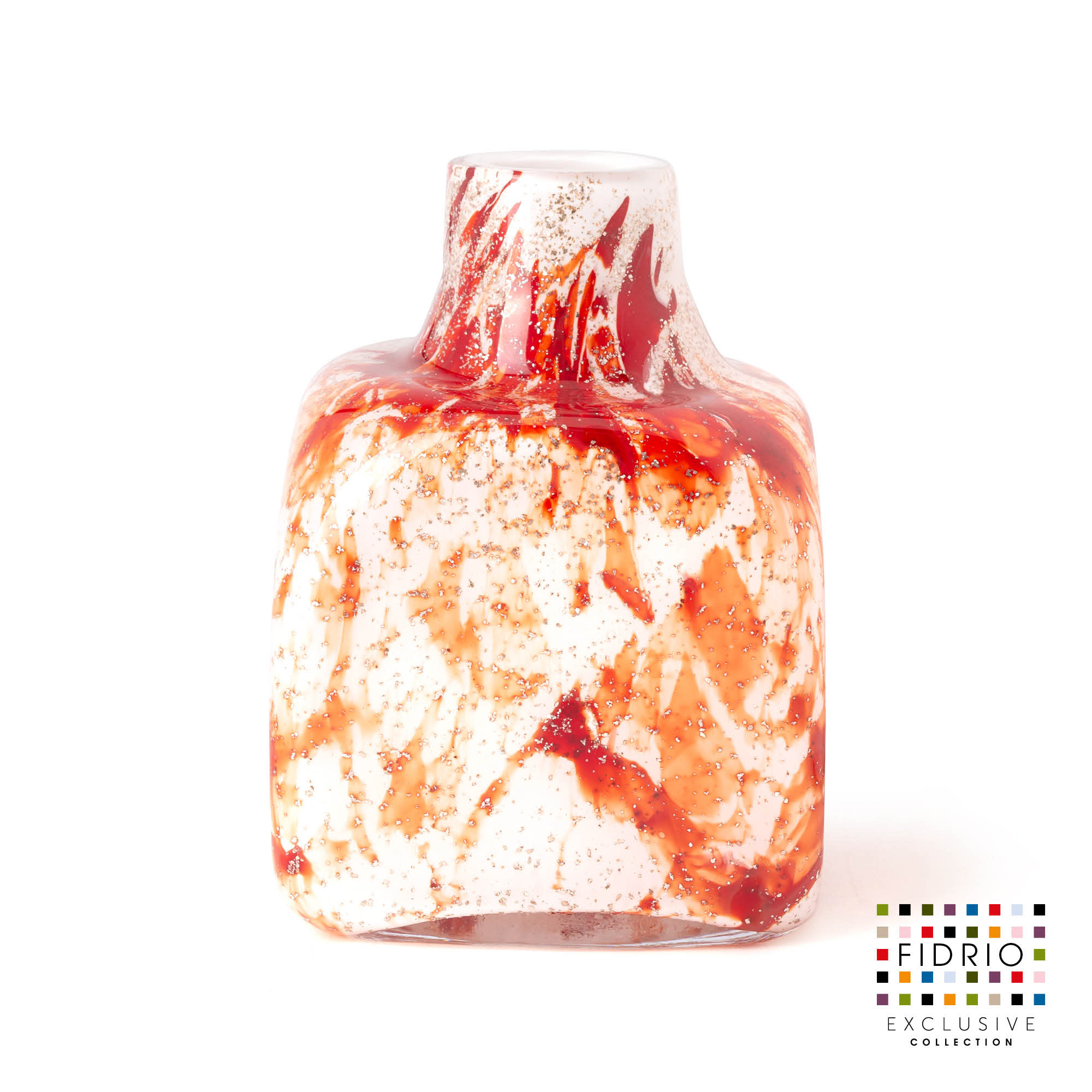 All Fidrio glass vases are made manually in the traditional, artisanal way. The workable super hot glass is blown into a wooden mold, where the mold serves as the basic shape, but the color shades and therefore the appearance will be different for each vase. The specified sizes are always approximately sizes.