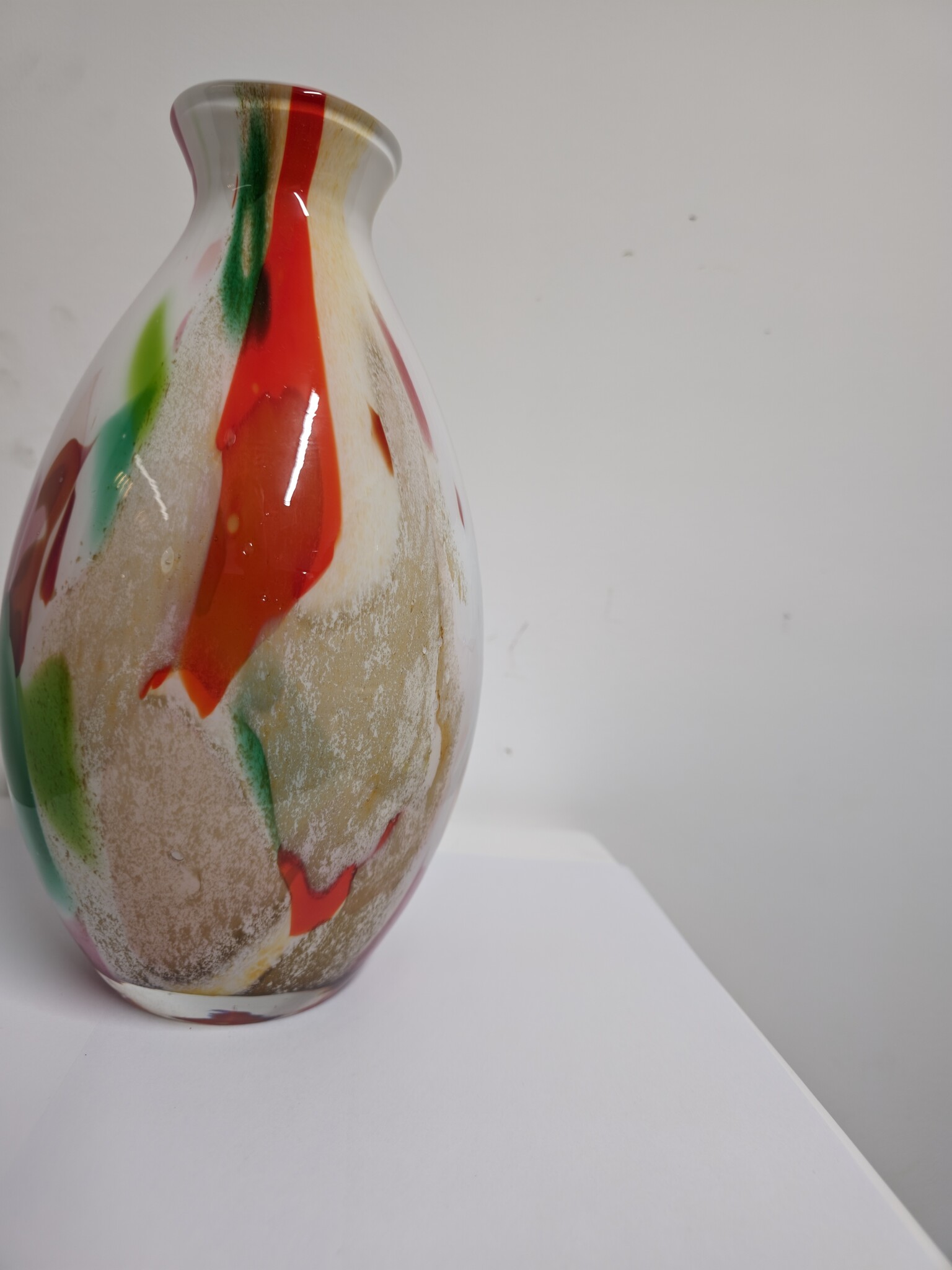 All Fidrio glass vases are made manually in the traditional, artisanal way. The workable super hot glass is blown into a wooden mold, where the mold serves as the basic shape, but the color shades and therefore the appearance will be different for each vase. The specified sizes are always approximately sizes.