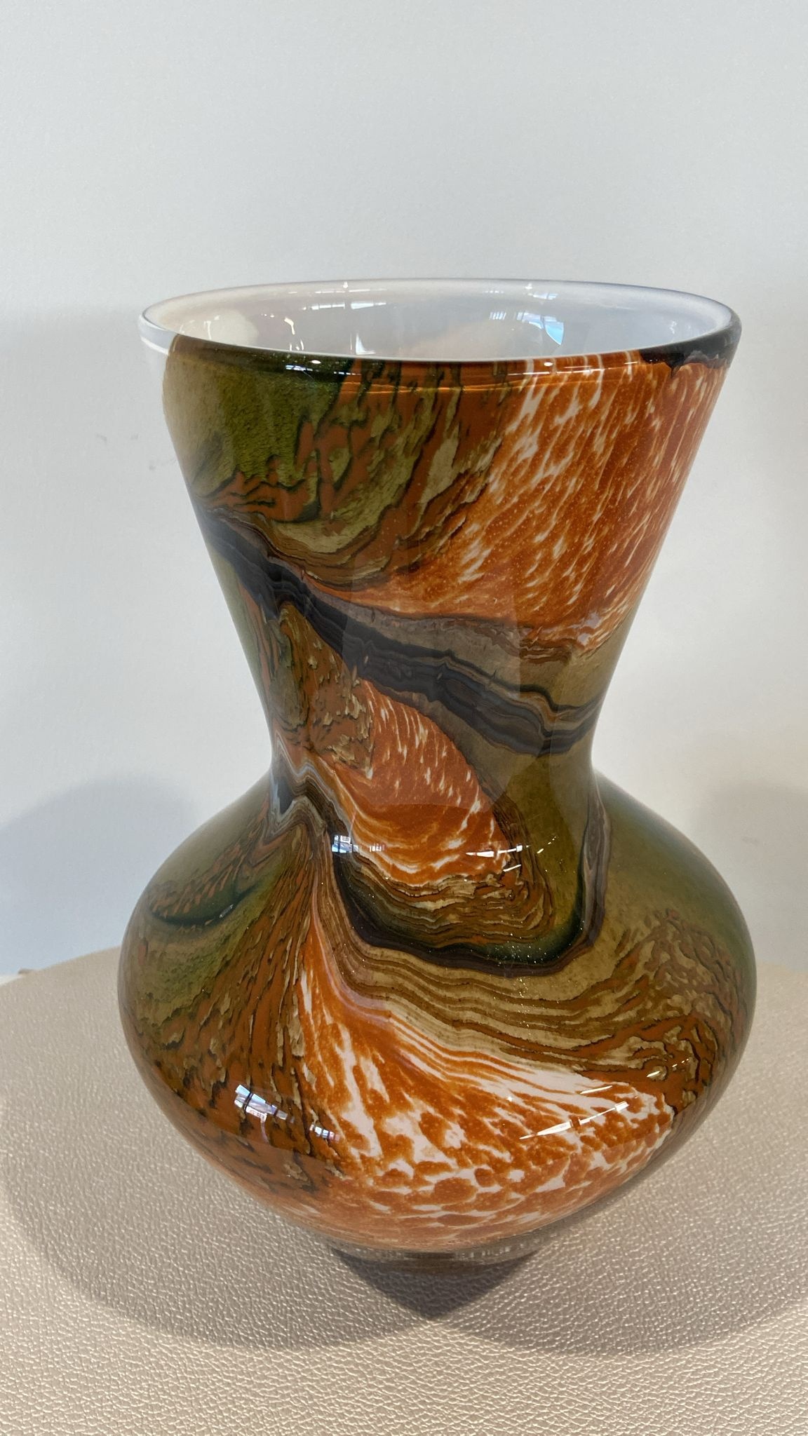 All Fidrio glass vases are handmade in the traditional, artisanal way. The editable super hot glass is blown into a wooden mold, where the mold serves as the basic shape, but the color shades and therefore also the appearance will be different for each vase. The stated sizes are always Approximate sizes.
