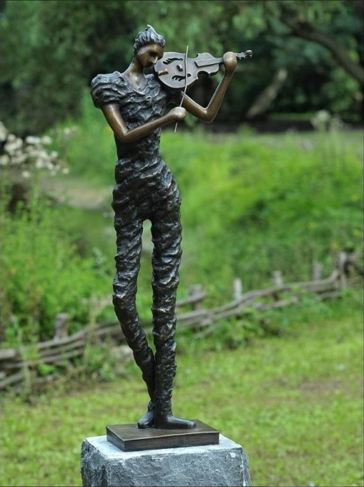Beautiful image of a violin player of high-quality bronze with a minimum copper content of 75% which guarantees a very long life.