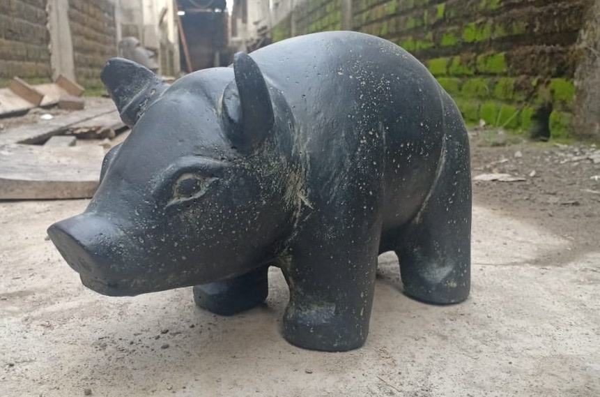 Pig statue of high-quality cast stone, 28 cm, statue may be placed indoors and outdoors.