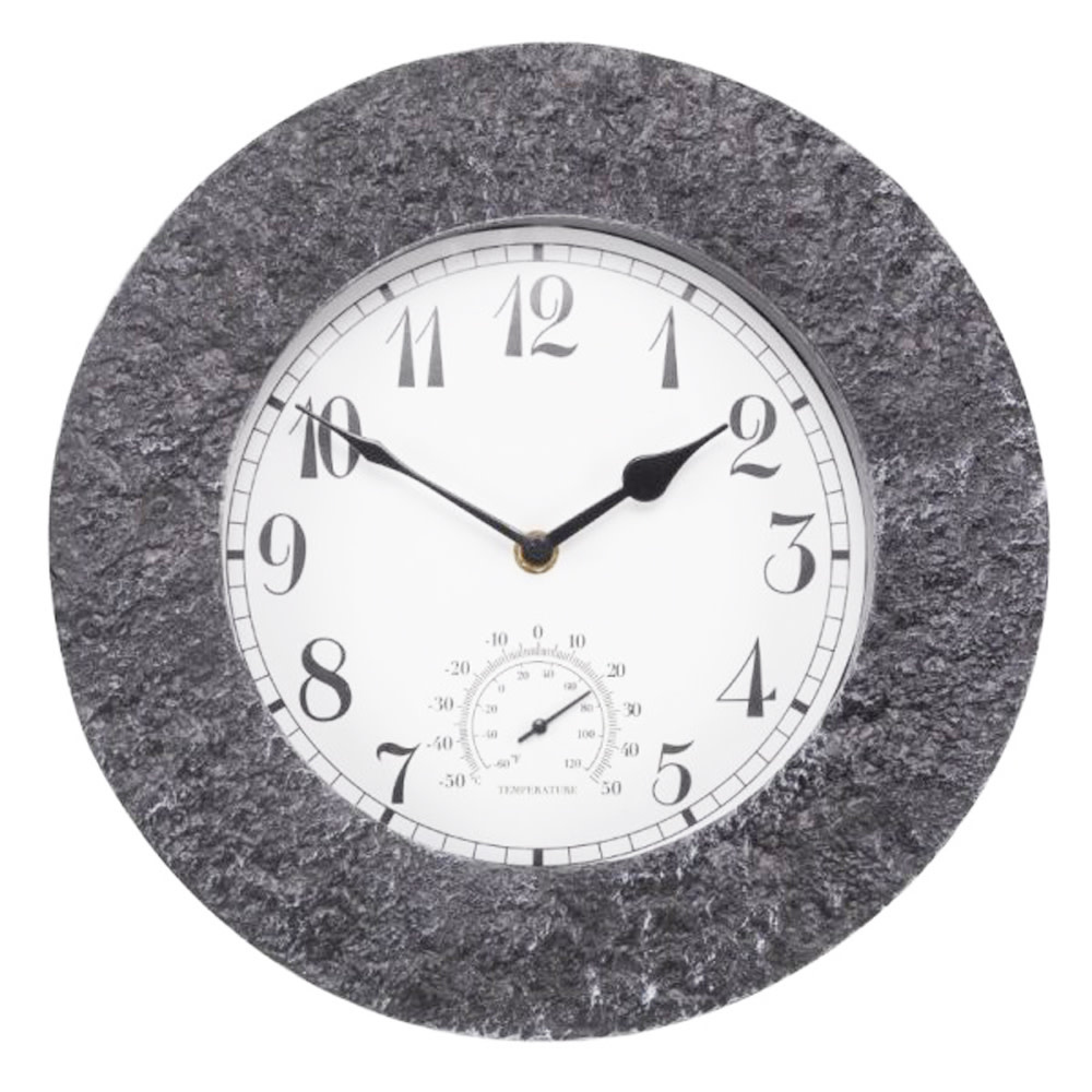Your garden or veranda will certainly be more beautiful with this model of waterproof round clock for outside. What could be better than having a piece of garden decoration on which you can immediately observe the time, temperature or humidity. This garden clock is also practical; after all, you no longer have to look at your watch with dirty hands or see how hot it is. This model outdoor clock has a beautiful wide gray-colored frame with a rough, stone-like surface, the clock is equipped with a thermometer and clockwork and is covered with acrylic glass.