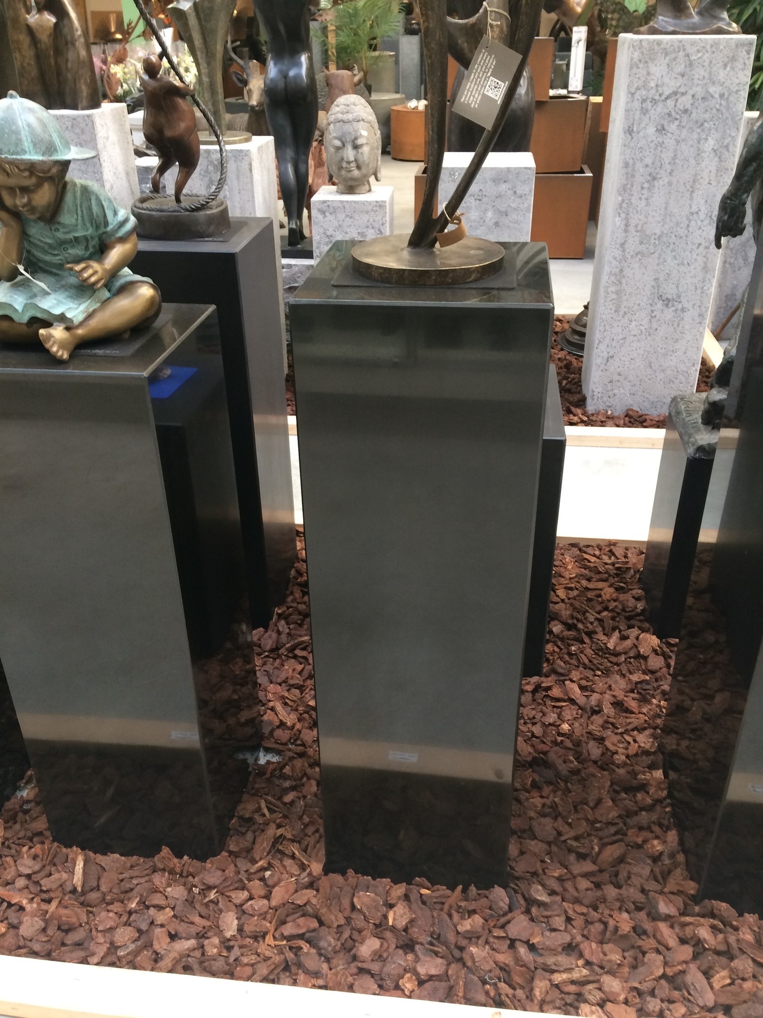 These columns are made of natural granite and then polished, resulting in a high-gloss plinth. The columns are extra reinforced in the corners with rubber on the underside to prevent damage to your floor.