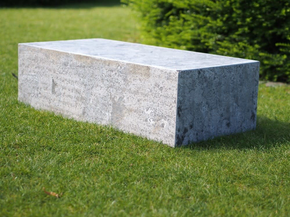 Rectangular pedestal of hard stone, with burnt sides and burnt top. Robust, natural look, nice combination for elongated statues or other objects that require this size, or to use as a plant column, but also looks great in your home or business. This pedestal is a heavy object and is very sturdy.