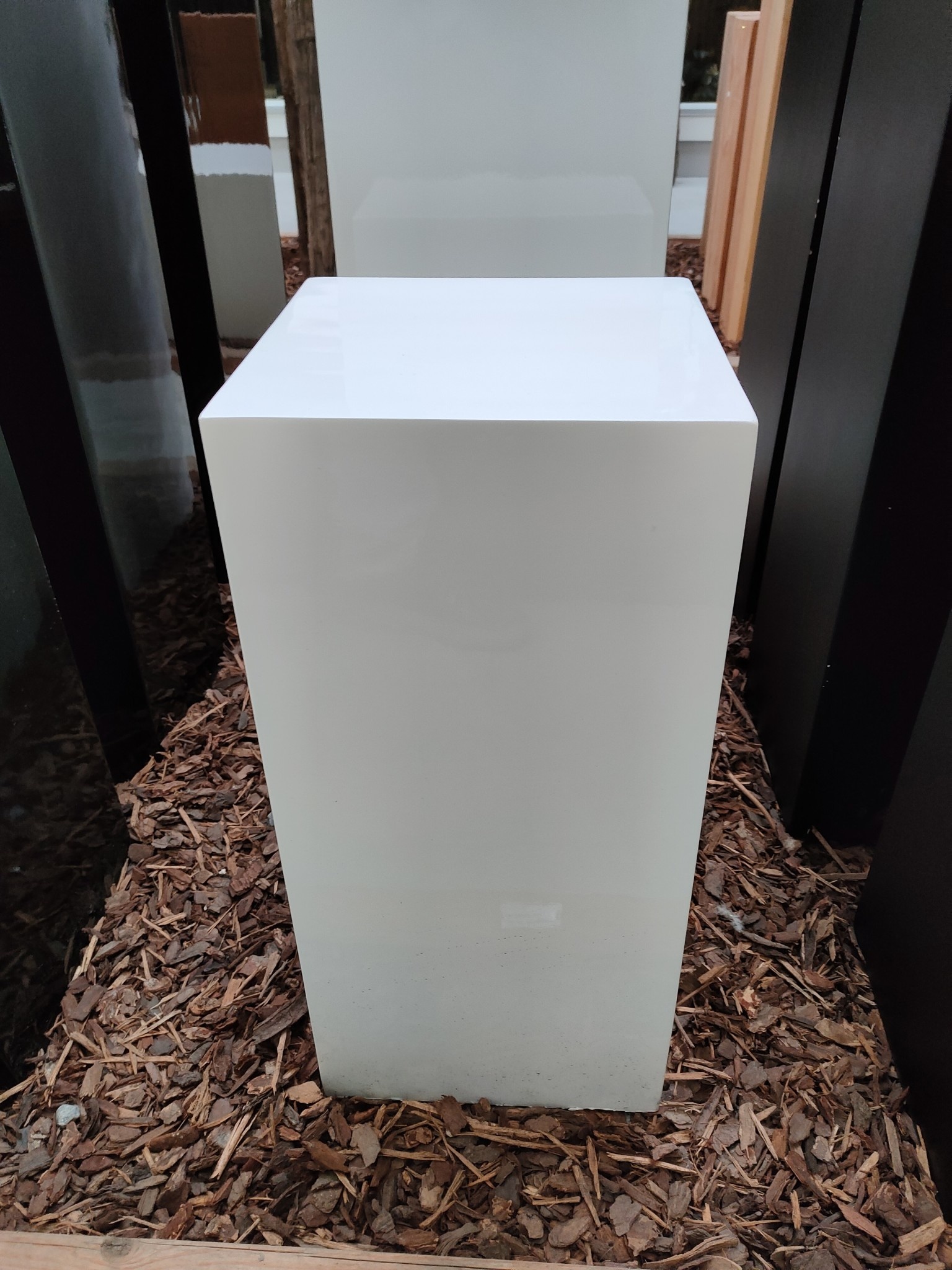 Bring pure beauty into your home or garden with this large modern high-gloss white pedestal.