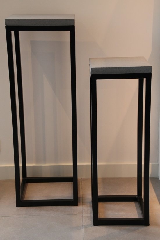 Made of steel tubes 25x25cm, so a heavy frame. black coated, beautifully finished with 3.5 cm thick gray Fiberstone top. Fiberstone is made of crushed natural stone, mixed with polyester-epoxy resin, and reinforced with fiberglass mats. This series is suitable for indoors and outdoors.