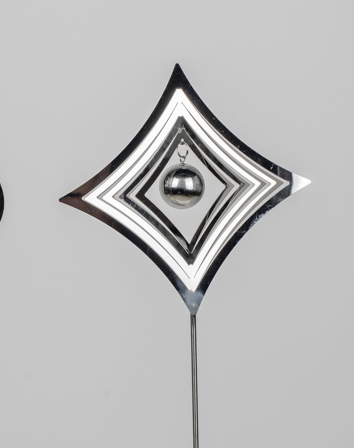 This silver-colored windmill will be a cheerful eye-catcher in any garden.