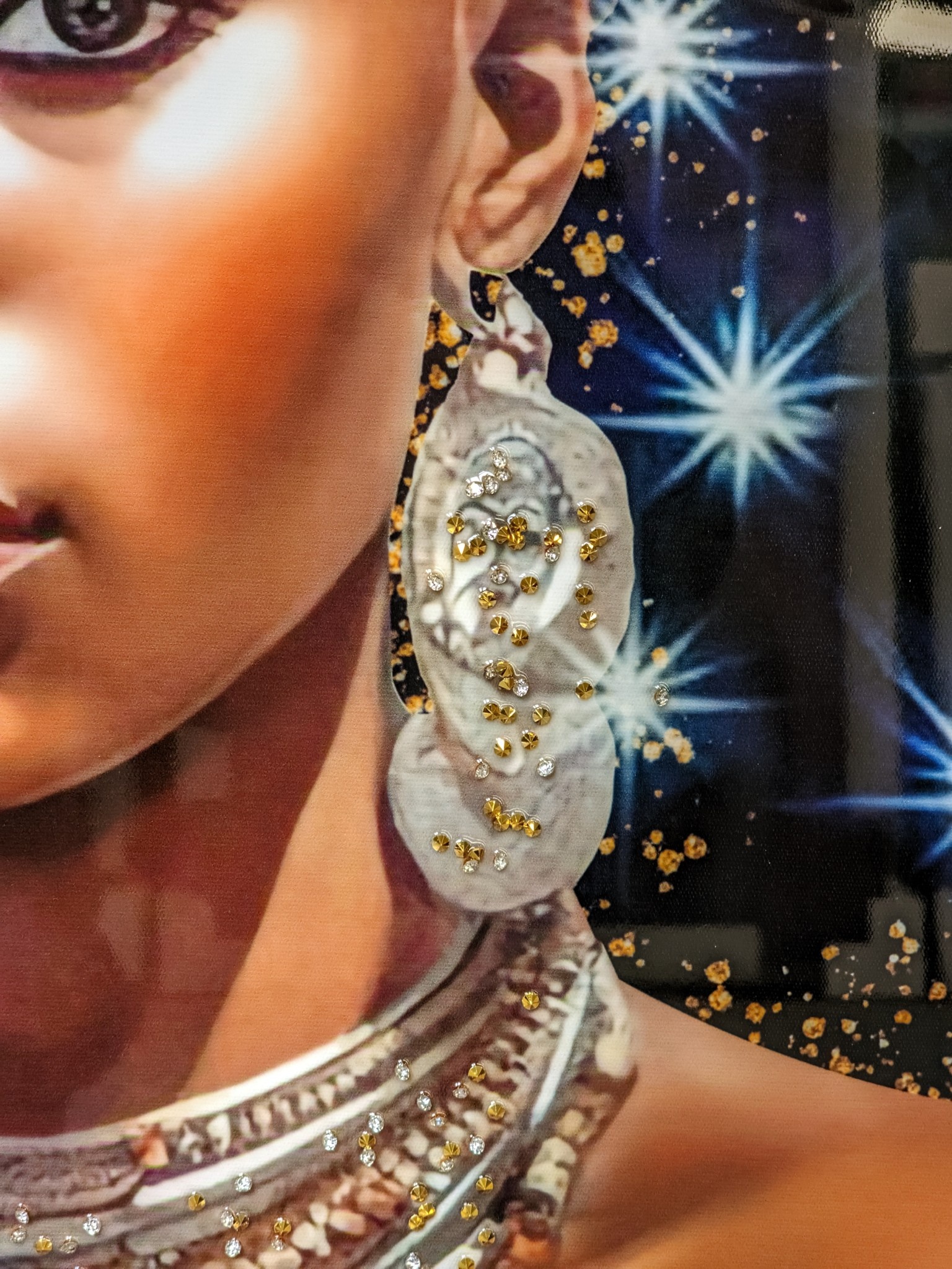 Rhinestone painting Silver earrings 62x82cm high gloss