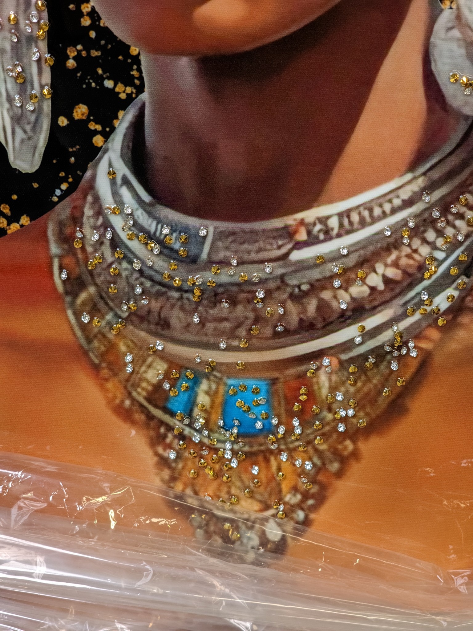 Finally, a thin UV-resistant foil is stretched over the entire canvas, after which the foil is vacuum-sucked. The result is a beautiful silk-gloss painting in which the rhinestones provide the trendy but also elegant look.