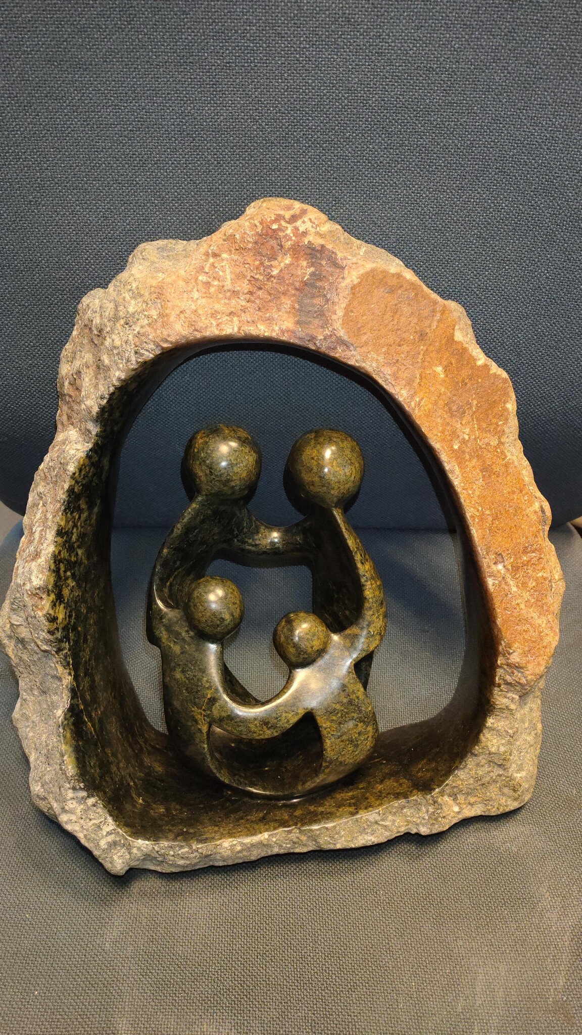 Soapstone statue Family 4 people rough stone 31cm