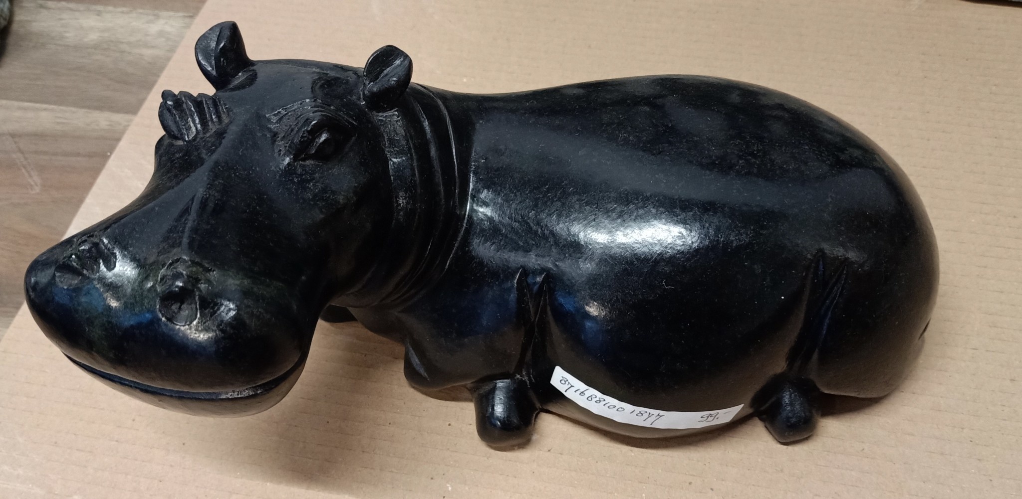 This model statue with the shape of a hippopotamus may differ from the photo in terms of color and shape, as it is handmade and also a natural material.