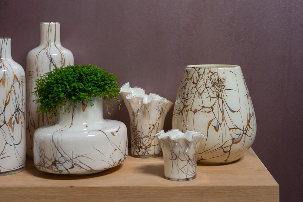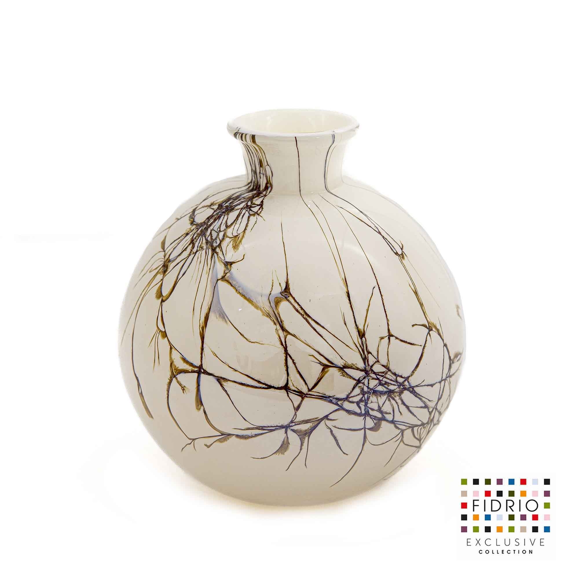 All Fidrio glass vases are made manually in the traditional, artisanal way. The workable super hot glass is blown into a wooden mold, where the mold serves as the basic shape, but the color shades and therefore the appearance will be different for each vase. The specified sizes are always approximately sizes.