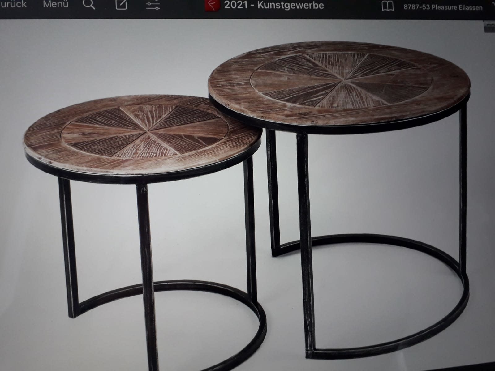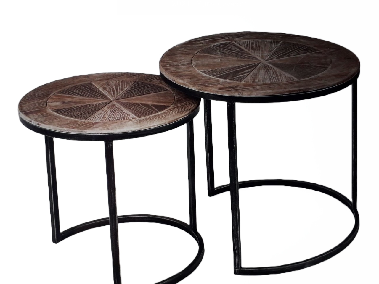 Bring pure beauty to your home or garden with this modern industrial style side table set, with a rural-looking wooden tops. This industrial table set is 2 parts, and can be pushed together.