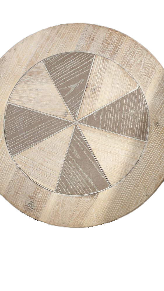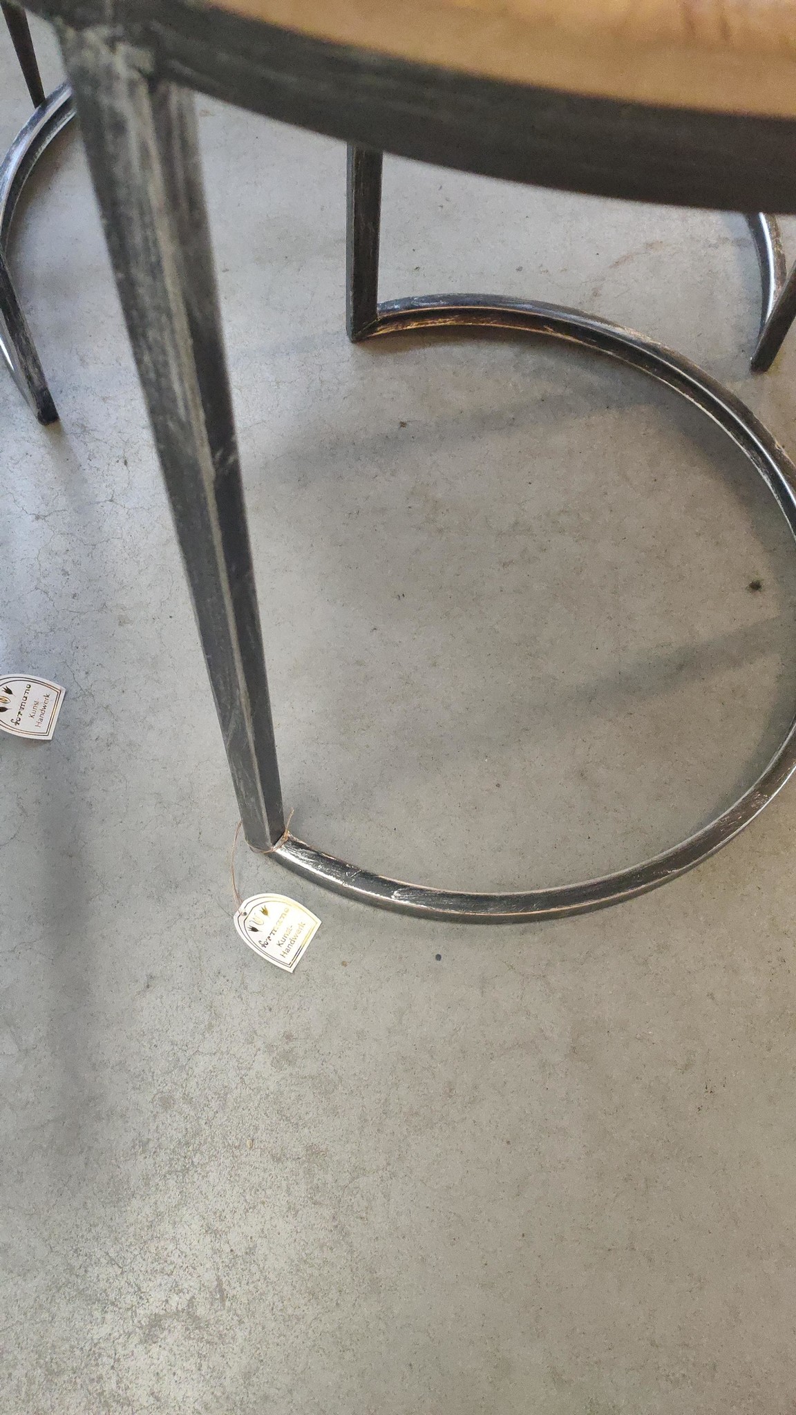 Made of steel tubes 12mm. black coated, with a silver finish on the ironwork. At the top is a 14mm thick MDF board, with a rural-looking star shape.