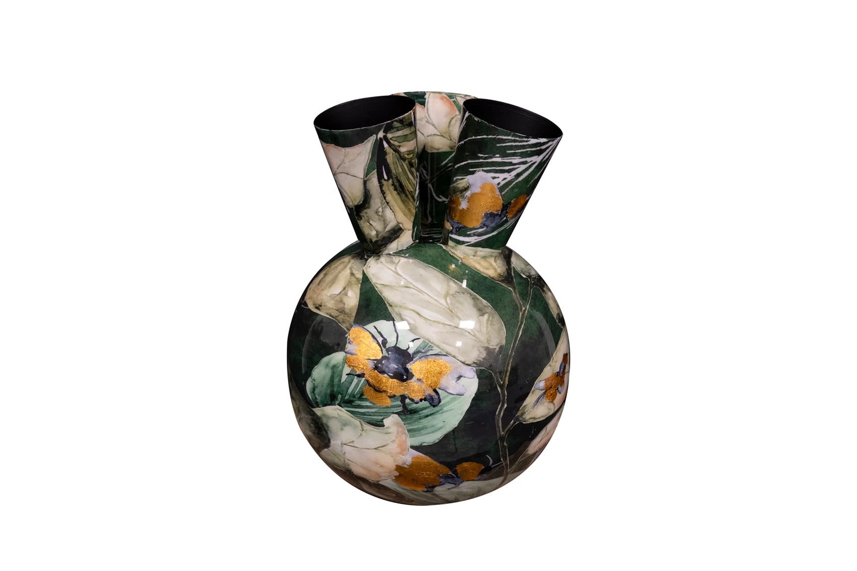 These pots and vases are carefully waterproofed made of metal, with the beautiful color transfer over it. The inside is coated black.