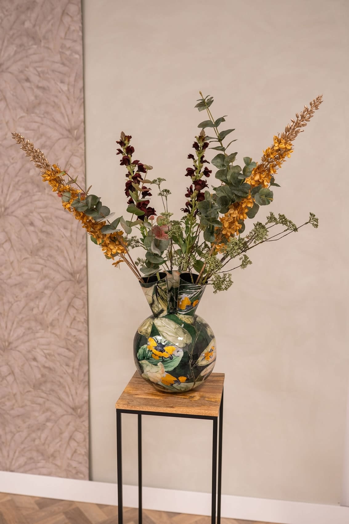 Although this pot series is waterproof, it is still recommended to place a waterproof suitable pot or vase in the outer pot in which the fresh flowers are placed, to prevent rust formation. It goes without saying that this is of course not necessary with silk flowers.