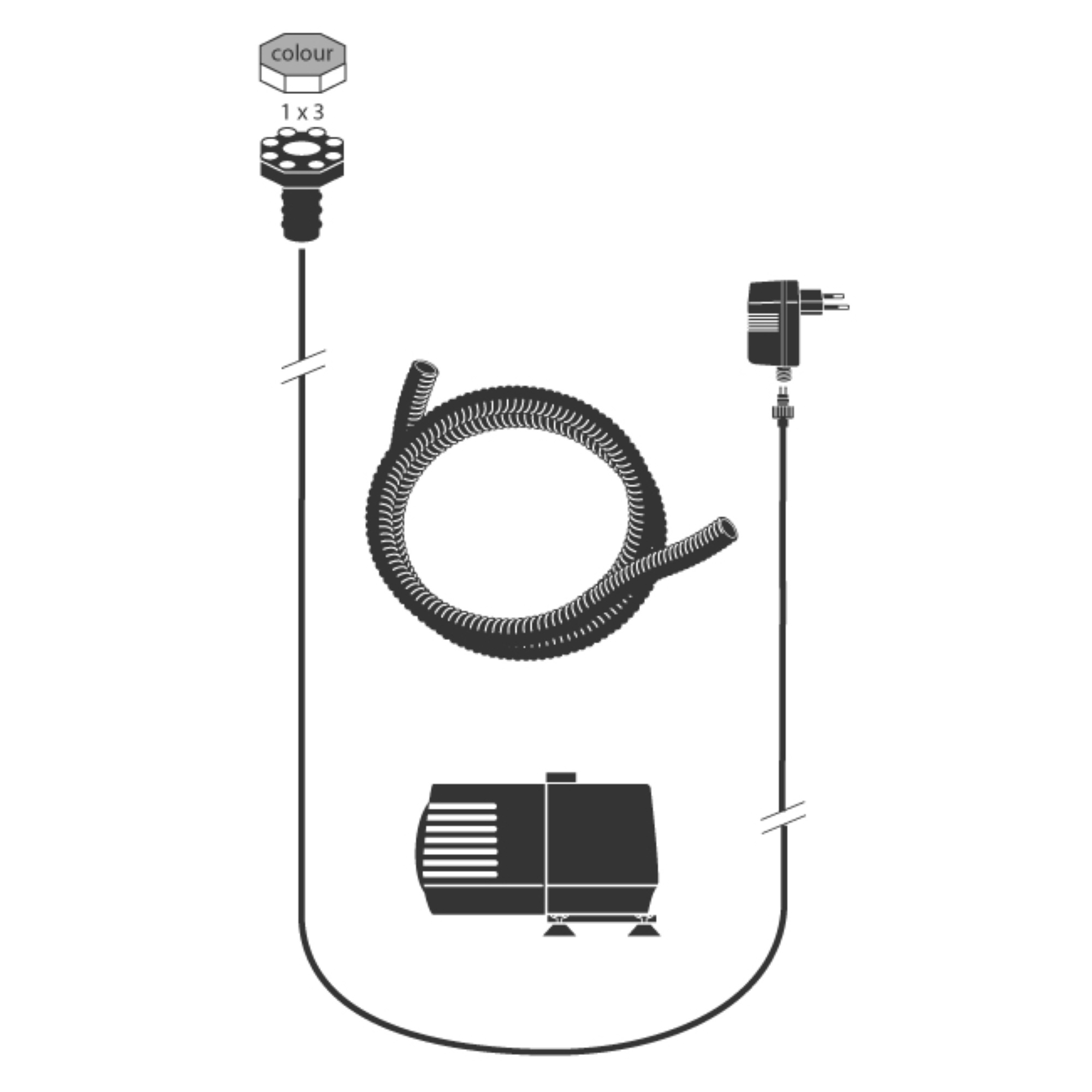 - With light: LED and pump 350 liters, 10 m cable length