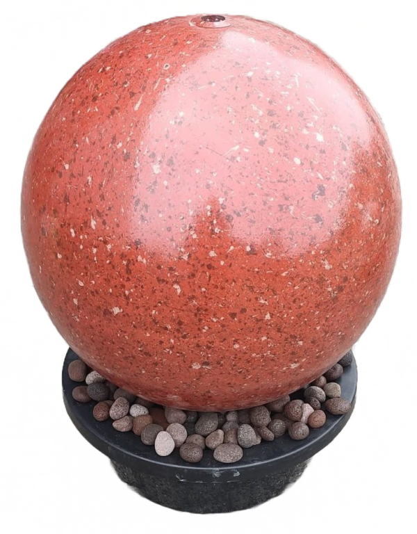 This will brighten up your garden! A large striking red stainless steel water ball with a diameter of 60 cm, on which a beautiful red coating has been baked. This set with a bubble ball gives a beautiful watercourse when it is switched on.