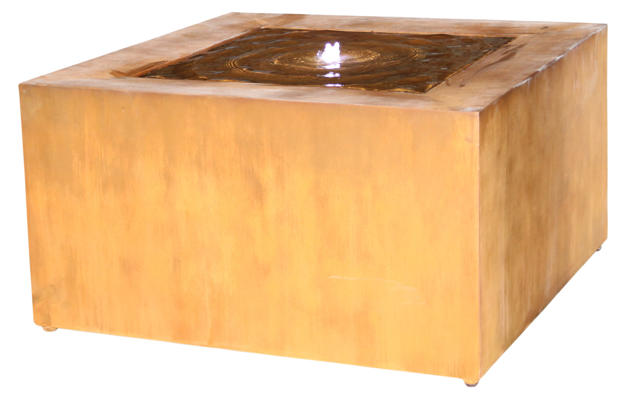 Very nice water table made of 1.5mm thick Corten steel. The water forms a layer of water on the top, which subtly flows off the edges. Stones can also be sprinkled on the plateau if desired.