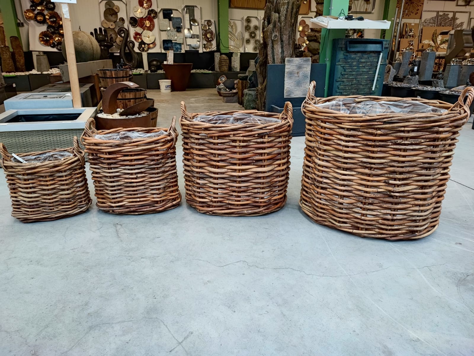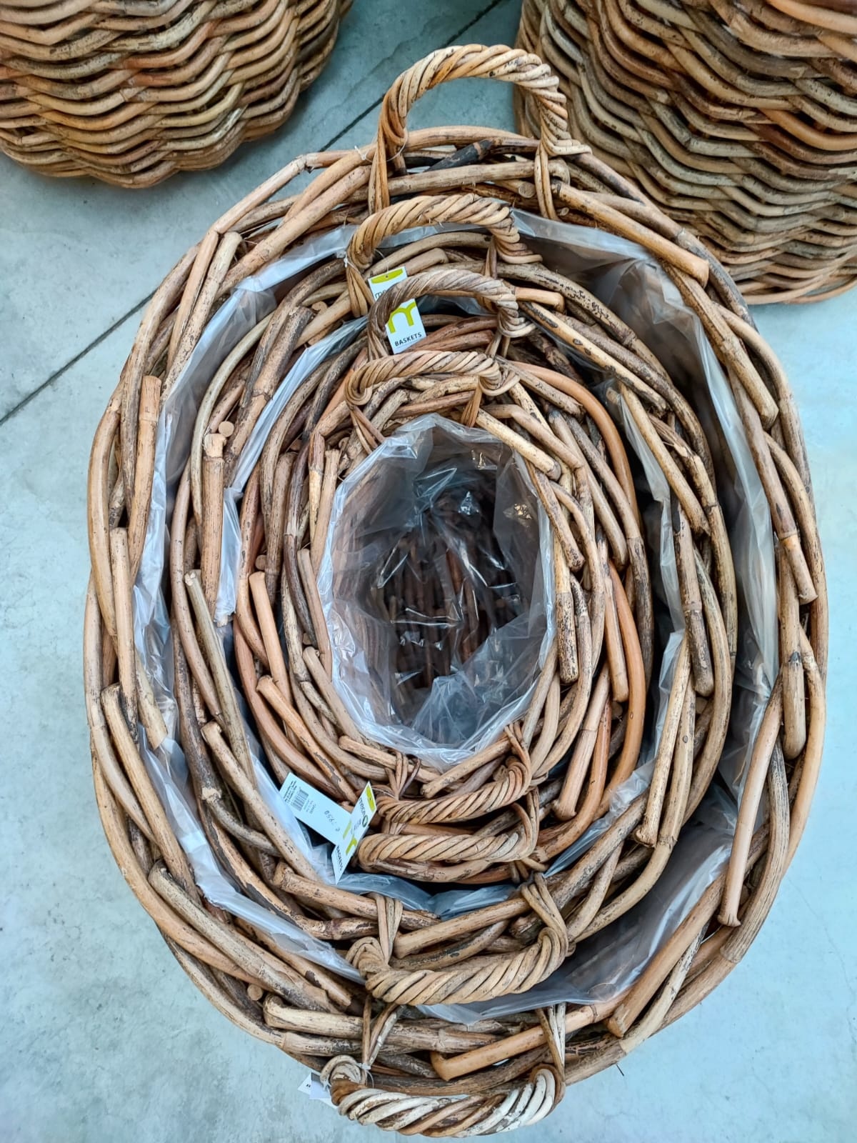 This large oval rattan basket is part of our own collection. This handmade basket is made of sturdy , super thick whole rattan, so not split rattan , and has a unique and stylish woven design. This round basket has very solid handles and is suitable for countless uses, for example toys, stove wood, plants and so on.