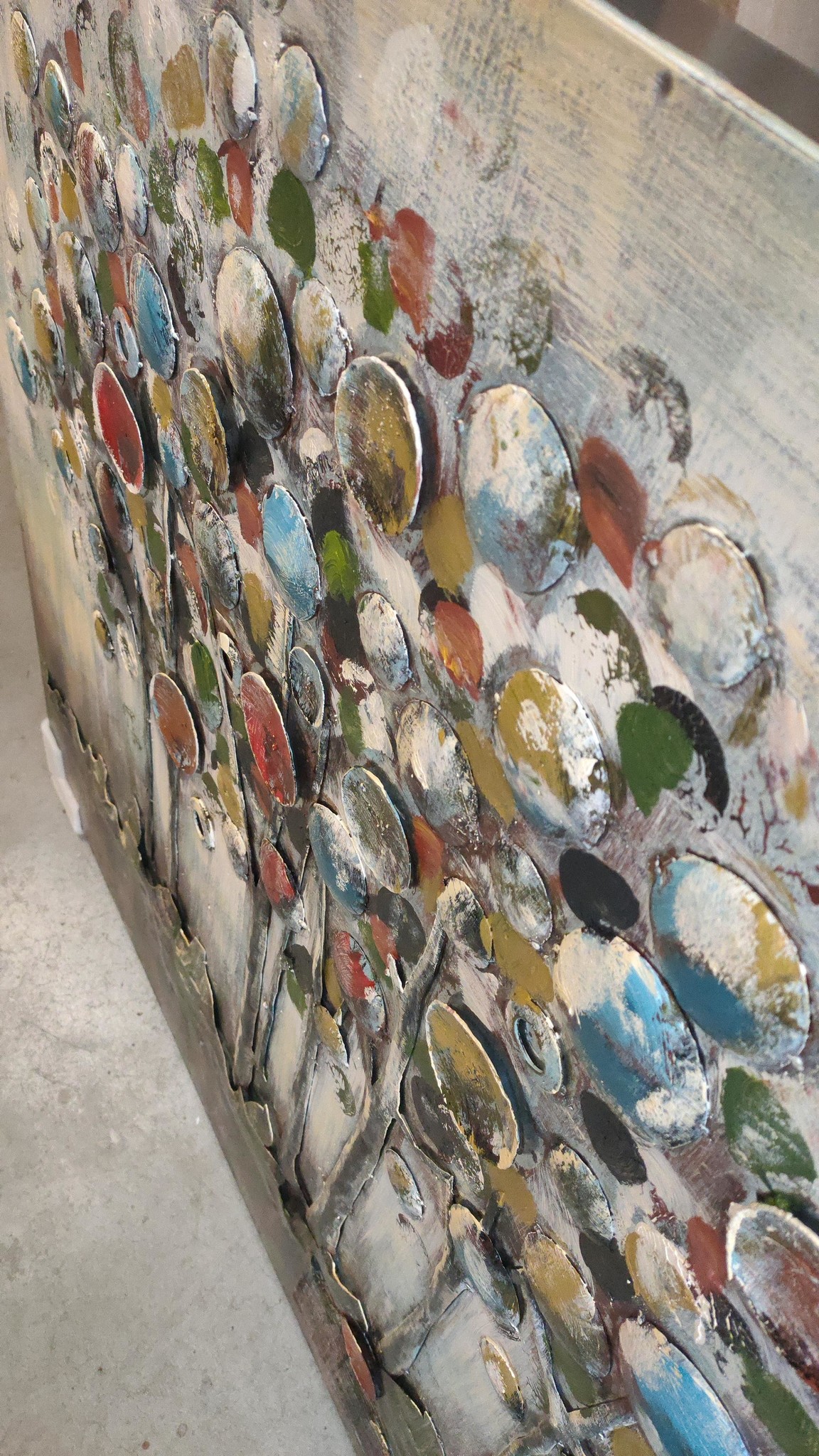 Mooi wordt uw huis, bedrijf of veranda (buiten onder een afdak dus) met een 3D schilderij van kleurrijke bomen. Dit model schilderij met kleurrijke bomen, is helemaal met de hand gemaakt. Alles is van metaal, achtergrond en figuur dus. Omdat het handgeschilderd is, kan de kleur iets afwijken van de foto, ze zijn nooit precies hetzelfde.