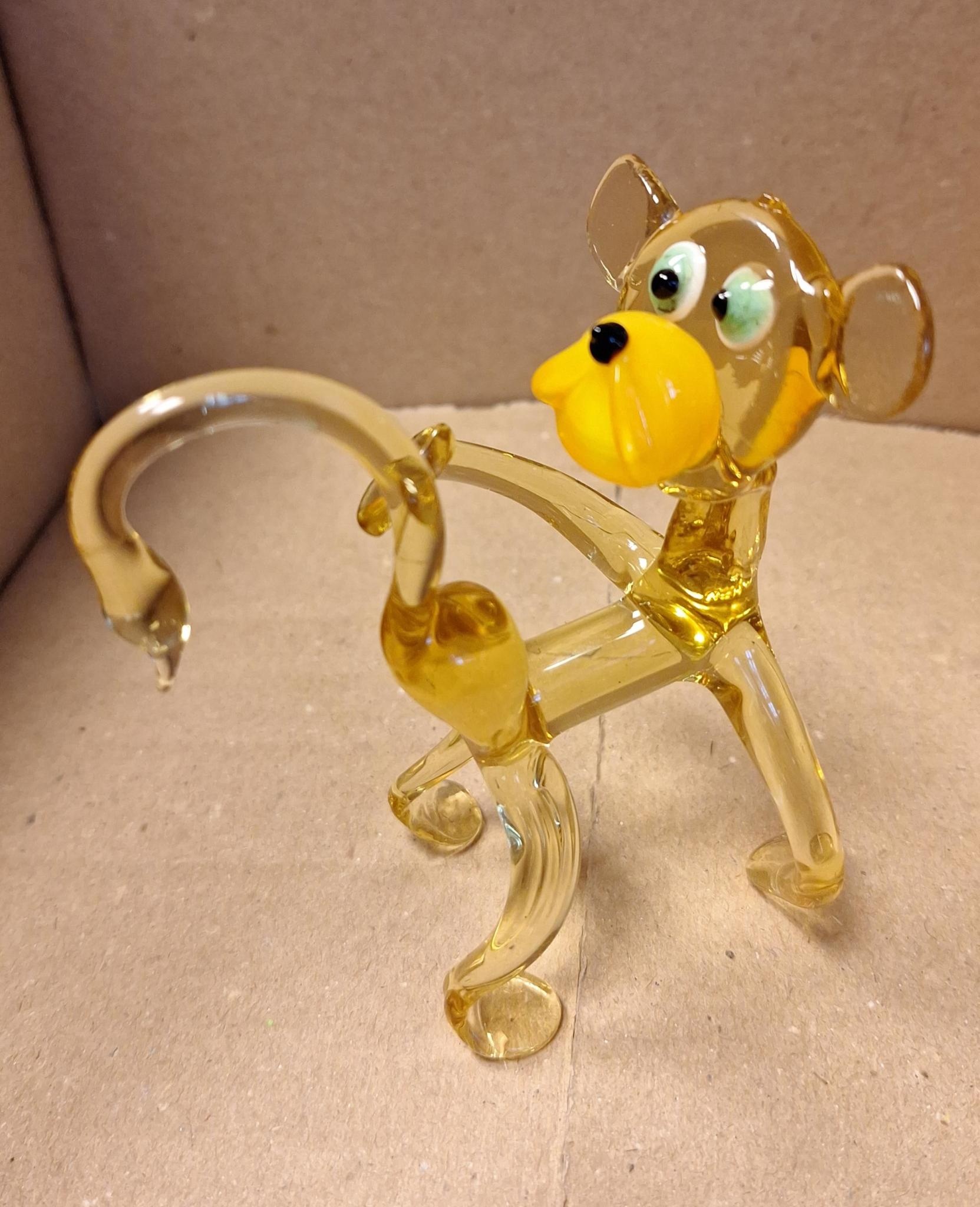Dit glazen aapje van Europese makelij is met de grootste zorg en zeer gedetailleerd gemaakt.