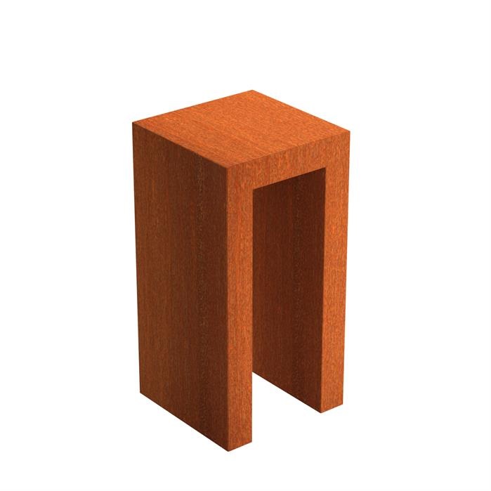 Solide sokkels in U-vorm van 2mm dik cortenstaal. Deze serie sokkels kunnen 150 kg dragen en zijn daarom dus geschikt voor bronzen beelden, zonnewijzers, maar ook voor potten en stenen beelden. Ook mooi met een vuurschaal erop, dan kunt u de zuil gebruiken als hout opslag.
