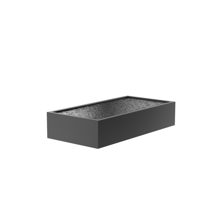 Zeer mooie ambachtelijk gemaakte en degelijk afgewerkte rechthoekige vijverbak van 4mm dik aluminium. Aluminium geeft niet af, is licht van gewicht en roest niet.