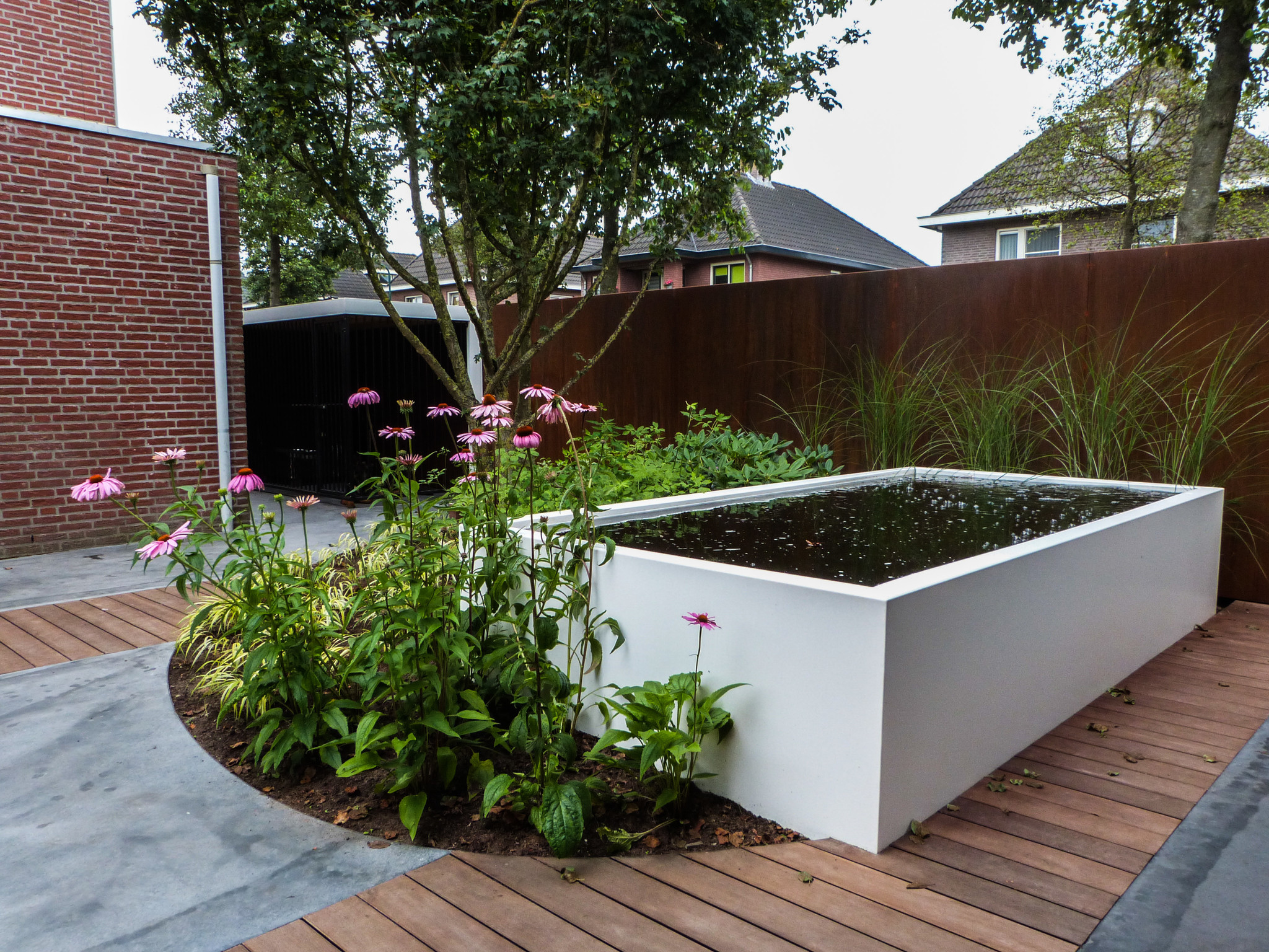 Deze vijverbak geeft een extra dimensie aan uw tuin, waardoor het uw tuin uniek maakt. Deze vijverbak kunt u ook uitbreiden door middel van het plaatsen van een vijvermuur met waterval.