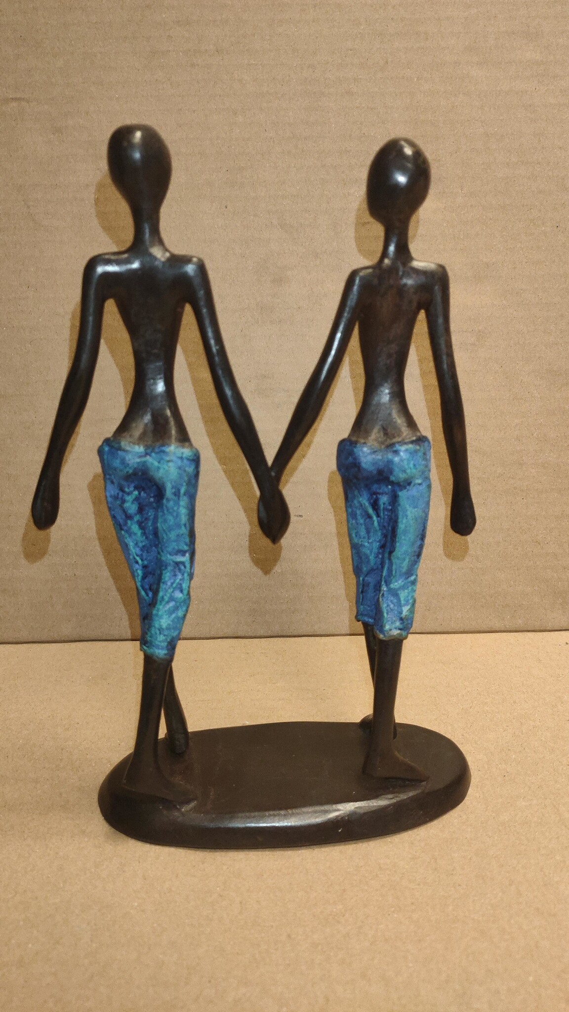 Afrikaans bronzen beeld 2 mannen 22cm