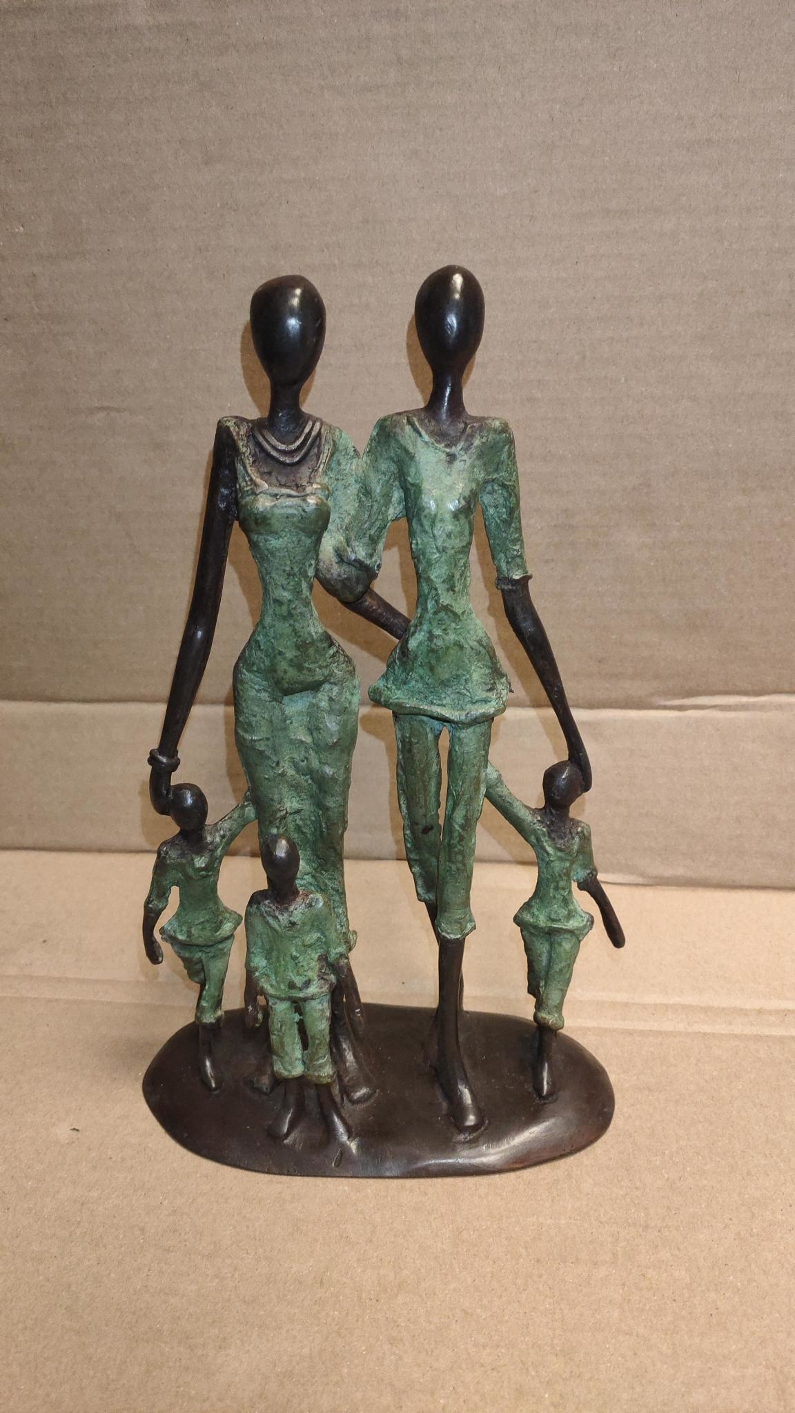 Afrikaans bronzen beeld Gezin 3 kinderen 25cm