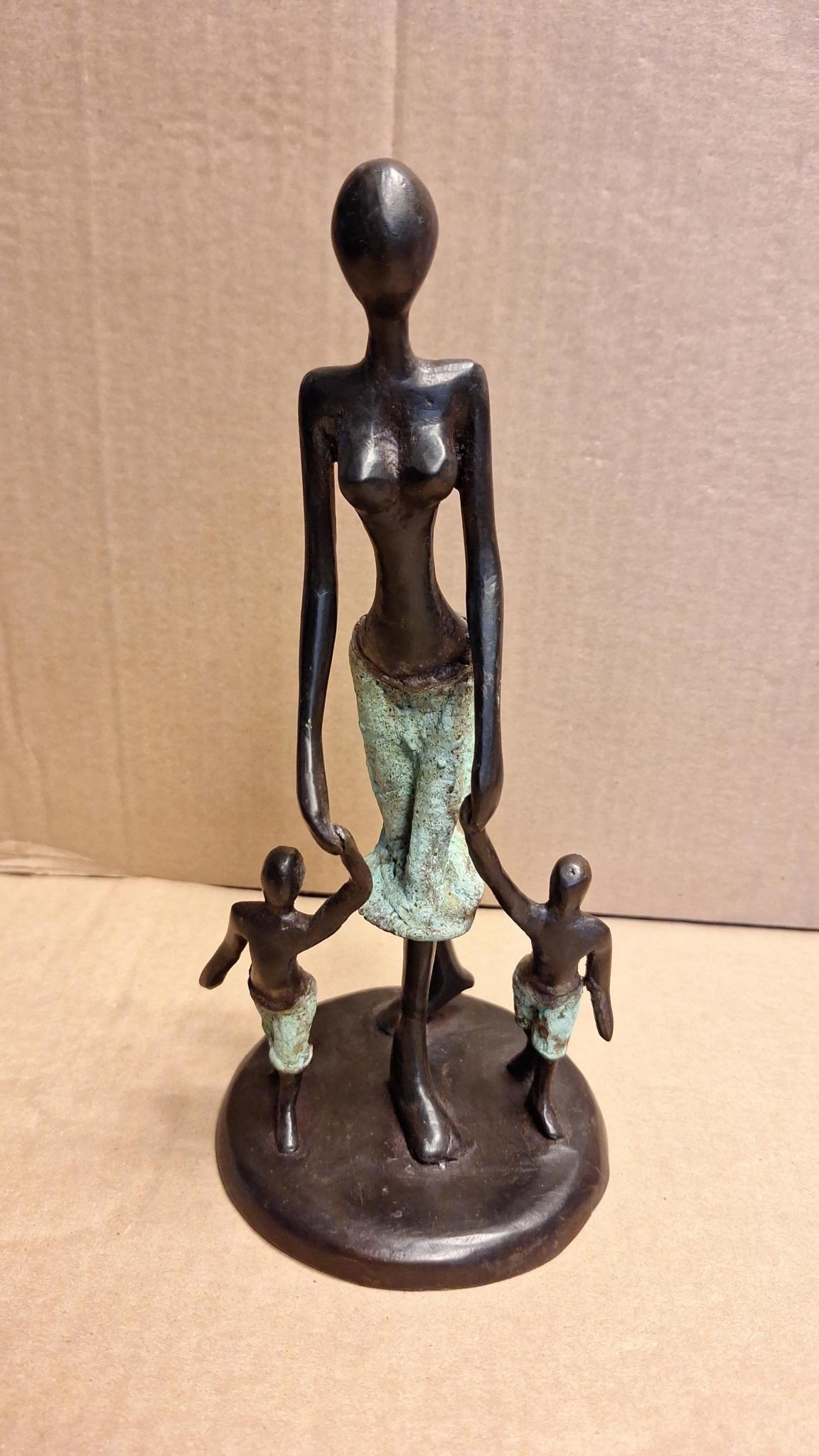 Afrikaans bronzen beeld Moeder met 2 kinderen 22cm