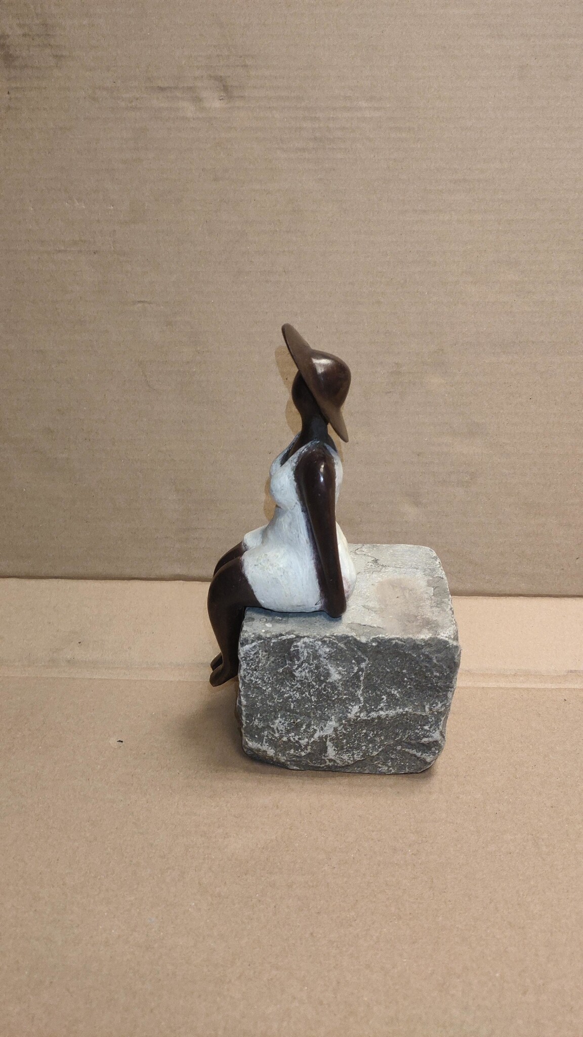 Afrikaans bronzen beeld Vrouw met hoed wit 20cm