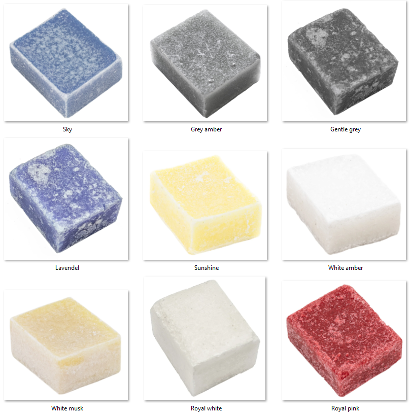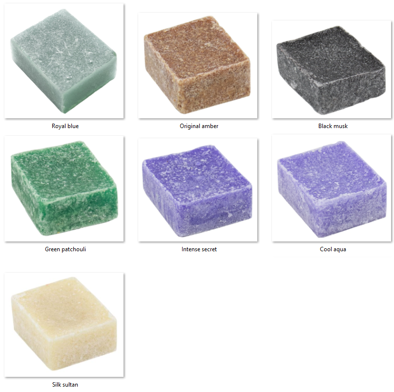Onze geurblokjes zijn Ca 3,5×4,5×1,8 cm groot, en voorzien van ethrische olieeën, absoluut geen chemische geurstoffen. Met een zgn rasp kunt u wat van het blokje afraspen, de oppervlakte wordt daarmee groter waardoor de geur afgifte groter wordt.