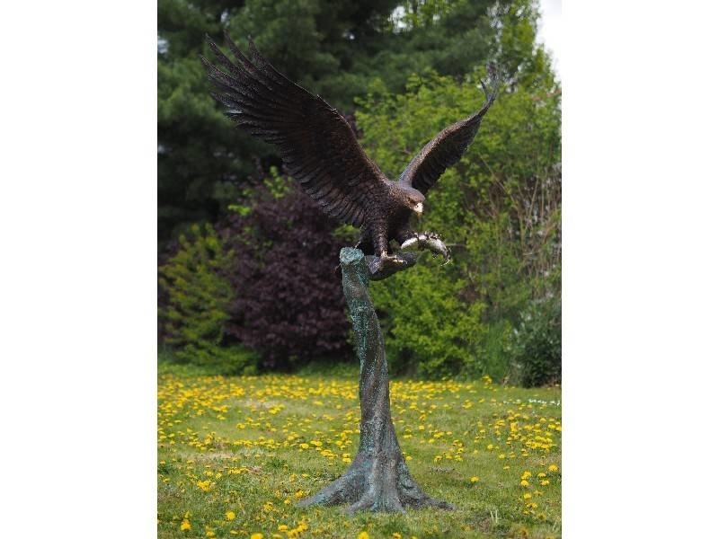 Een eenwinst in uw tuin, maar natuurlijk ook binnenshuis of in of bij uw bedrijf, deze schitterend mooi vormgegeven grote arend met prooi , helemaal gemaakt van brons. Het brons wat voor dit beeld gebruikt is, heeft een minimaal kopergehalte van 75%, hetgeen het voorkomen van oxidatie of andere vreemde plekken gewaarborgd wordt.