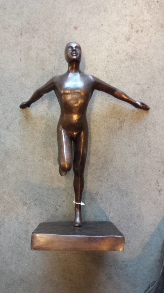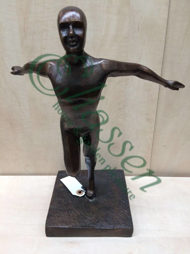 Mooi beeld van een atleet, van hoogwaardig brons met een minimale kopergehalte van 75% waardoor een zeer lange levensduur gegarandeerd is.