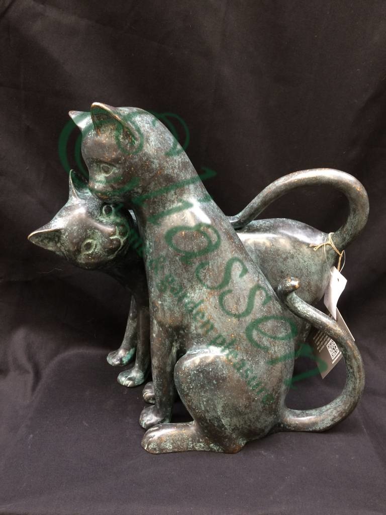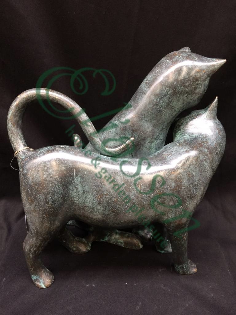 Mooi beeld van 2 poezen van hoogwaardig brons met een minimale kopergehalte van 75% waardoor een zeer lange levensduur gegarandeerd is.