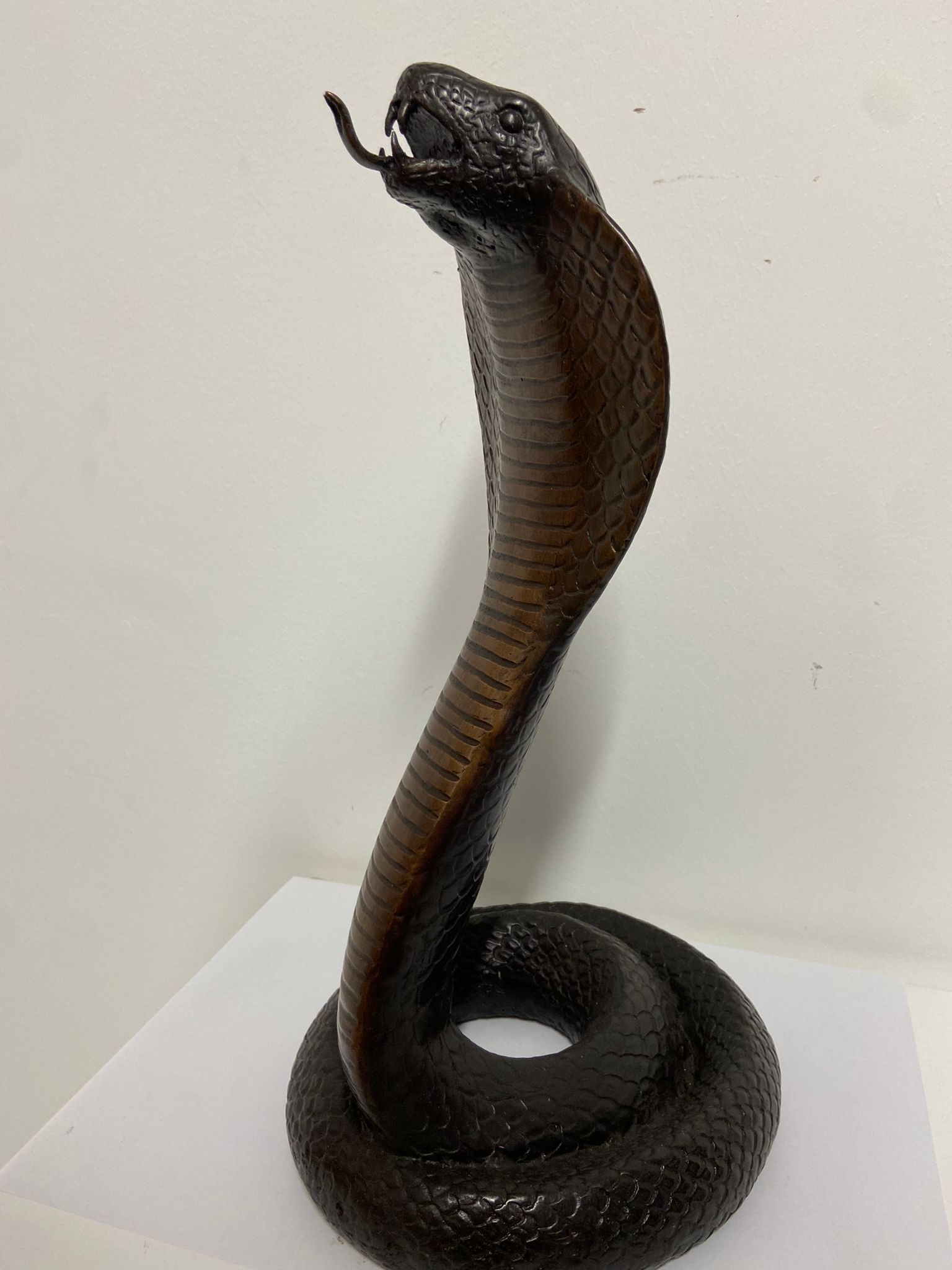 Mooi modern modern vorm gegeven beeld van Cobra slang. Gemaakt van 100% hoogwaardig brons met een minimale kopergehalte van 75% waardoor een zeer lange levensduur gegarandeerd is en geen lelijke vlekken ontstaan.  Een prachtig en duurzaam decoratie object voor huis , bedrijf of tuin, maar ook voor een prachtig geschenk.