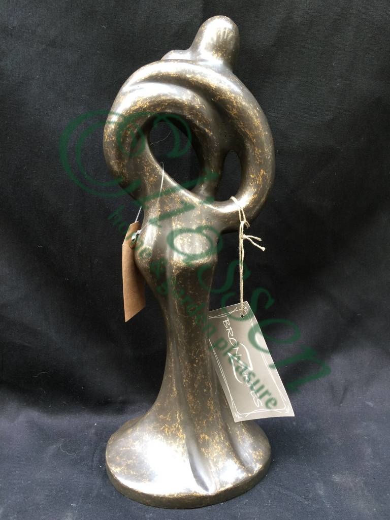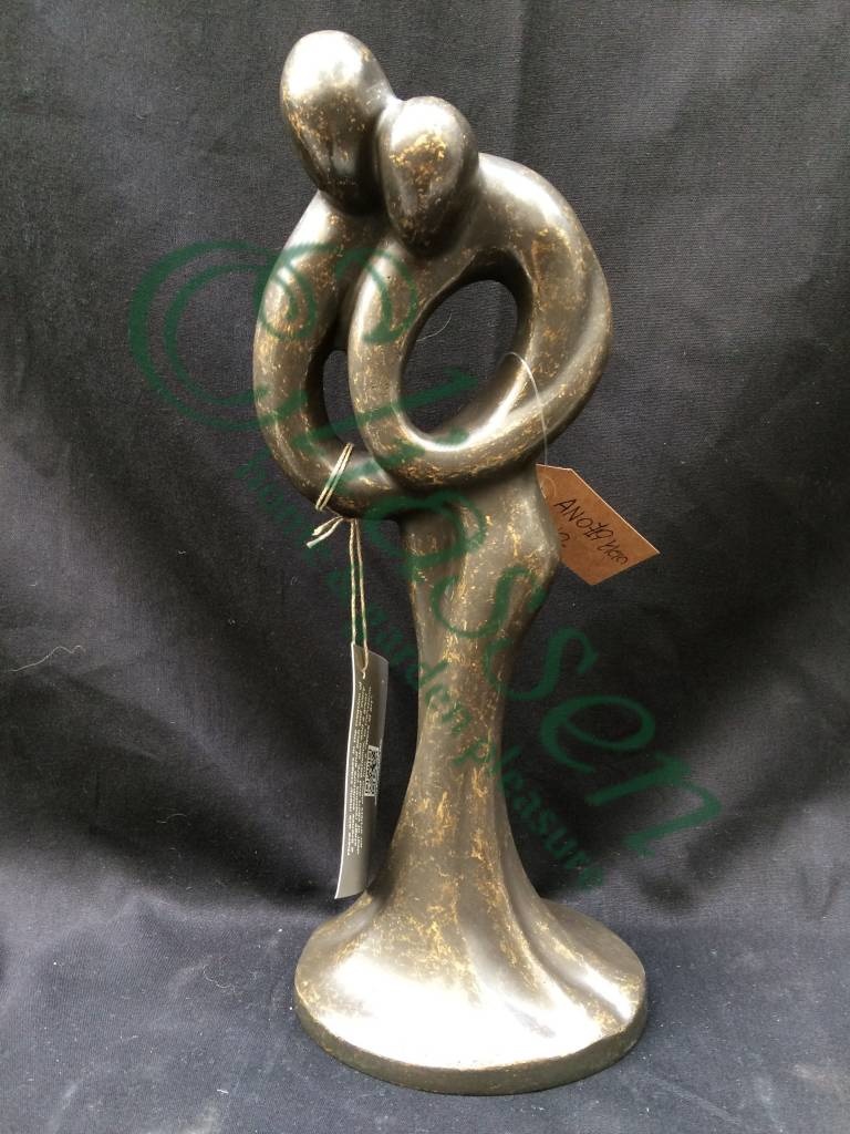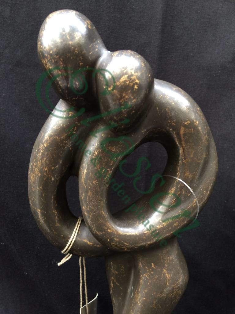 Mooi beeld van een klein abstract liefdespaar van hoogwaardig brons met een minimale kopergehalte van 75% waardoor een zeer lange levensduur gegarandeerd is.