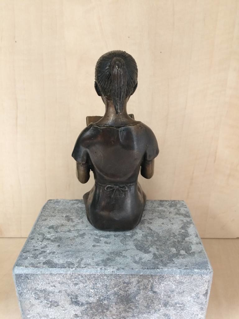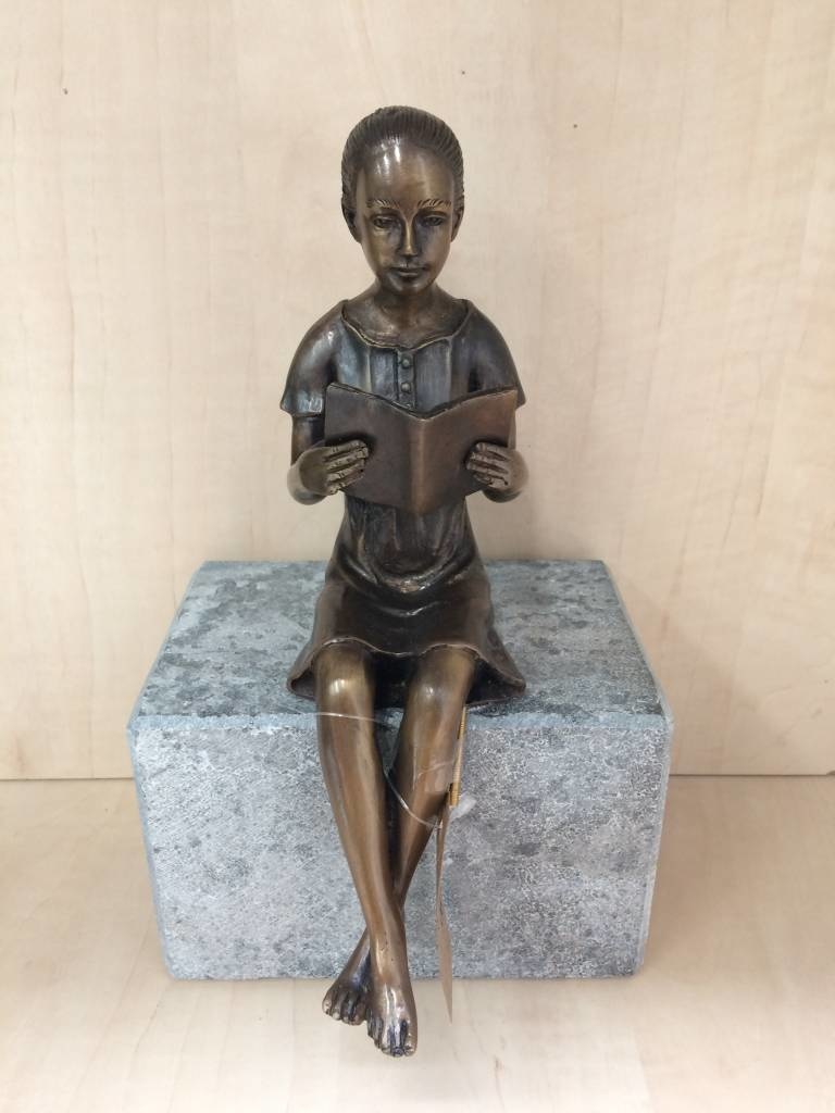 beeld brons klein lezend meisje