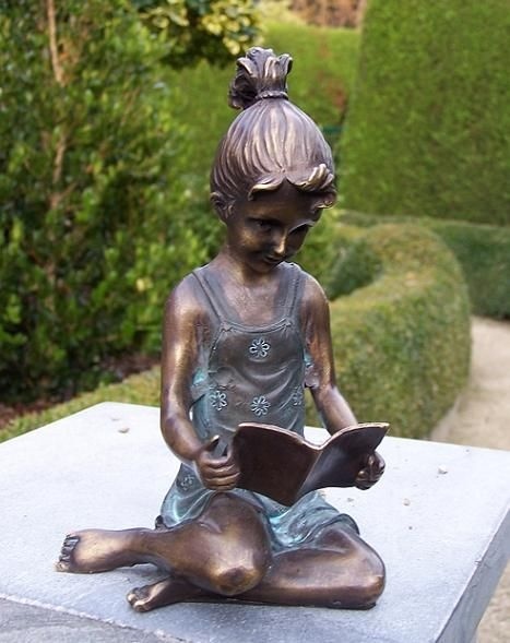 Mooi beeld van een meisje met een boek van hoogwaardig brons met een minimale kopergehalte van 75% waardoor een zeer lange levensduur gegarandeerd is.