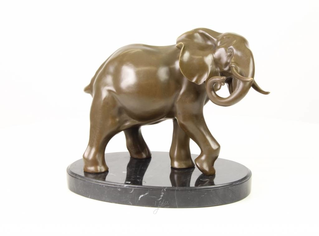 Mooi beeld van een olifant , op marmeren voet, van 100% hoogwaardig brons met een minimale kopergehalte van 75% waardoor een zeer lange levensduur gegarandeerd is en geen lelijke vlekken ontstaan. Een prachtig en duurzaam decoratie object voor huis , bedrijf of tuin, maar ook voor een prachti geschenk. Zoekt een een bronzen beeld voor een jubilaris? Wij kunnen ook tekstplaatjes voor op de sokkel voor u verzorgen.